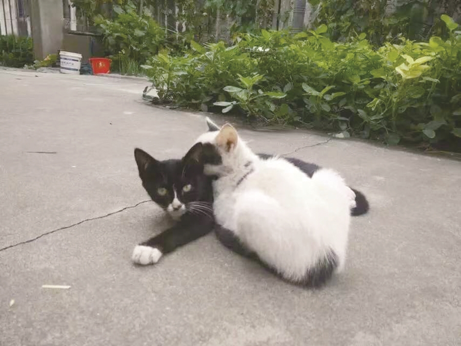 婆婆家有两只小猫,小黑是哥哥,小白是妹妹。小黑一身墨黑的绒毛,像团揉皱的天鹅绒,小白则雪白雪白的,远远望去像块蓬松的棉花糖。这对猫兄妹从睁眼的那一刻起,就注定要形影不离。