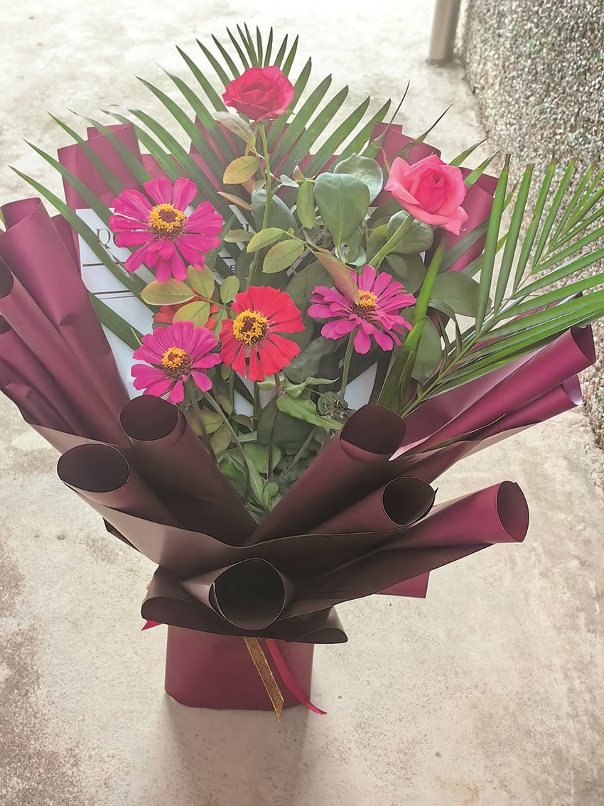 看着她的得意之作,一阵喜悦涌上心头,身上的伤痛也好像轻了不少。生活中难免遇到烦心事,可只要动动脑筋、换种思维,往往就会收获意外的惊喜。就像那束本该被丢弃的花,添上几朵鲜花,便重新焕发了光彩。