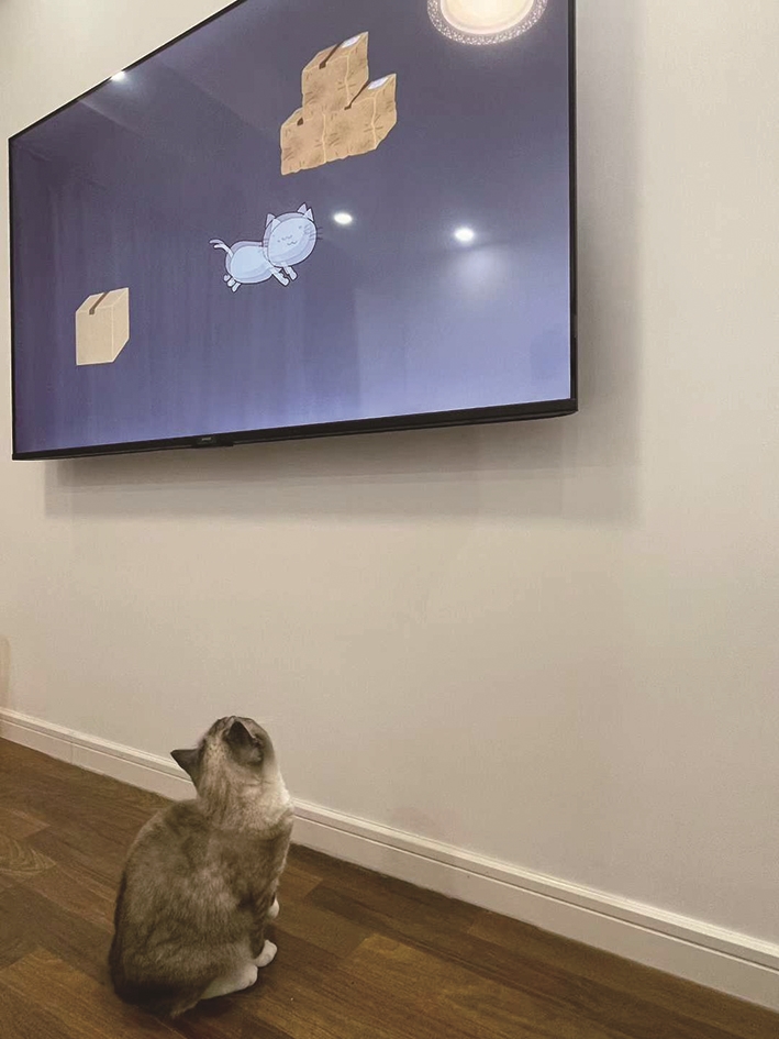 初觉小猫好霸道,但一想又有点唏嘘,都市养猫,除了每天二三十分钟下楼放风时间,只能被关在高层公寓里,能做伴的只有玩具和人类,相比不会动的玩具猫、玩具鼠,动画片里能蹦能跳的卡通猫确实更能吸引小猫。