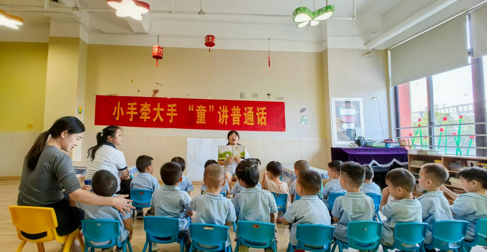 寓教于乐,趣味推普。活动以“寓教于乐”为主线,通过丰富多样的形式激发孩子们的语言学习兴趣。志愿者老师以绘声绘色的方式讲述经典童话故事,带领孩子们一起跟读、模仿普通话语音语调,并组织大家合唱朗朗上口的童谣儿歌。孩子们在欢快的节奏和温馨的互动中,不仅初步感知了普通话的表达韵律,也增强了语音的准确性。现场还设置了趣味识字卡片游戏和看图说话环节,孩子们一边玩、一边学,踊跃举手发言,真正实现了“在玩中学、在学中乐”,大大激发了“愿意说、喜欢说、大胆说”普通话的热情。