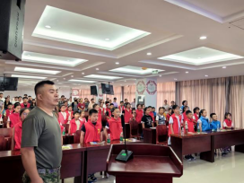 活动开始,红星中队指导员张小平以“国旗的诞生”为题展开讲解。他从1949年全国政协征集国旗图案的历史背景切入,详细介绍五星红旗的设计寓意:“大五角星象征中国共产党,四颗小星代表全国各族人民团结在党的周围;红色象征革命,黄色代表光明。”张小平还通过对比不同历史时期的国旗使用场景,强调“国旗是国家的尊严,升旗时要肃立行礼”。孩子们听得入神,纷纷举手互动,并大声齐诵:“我热爱国旗,像爱护生命一样爱护她!”