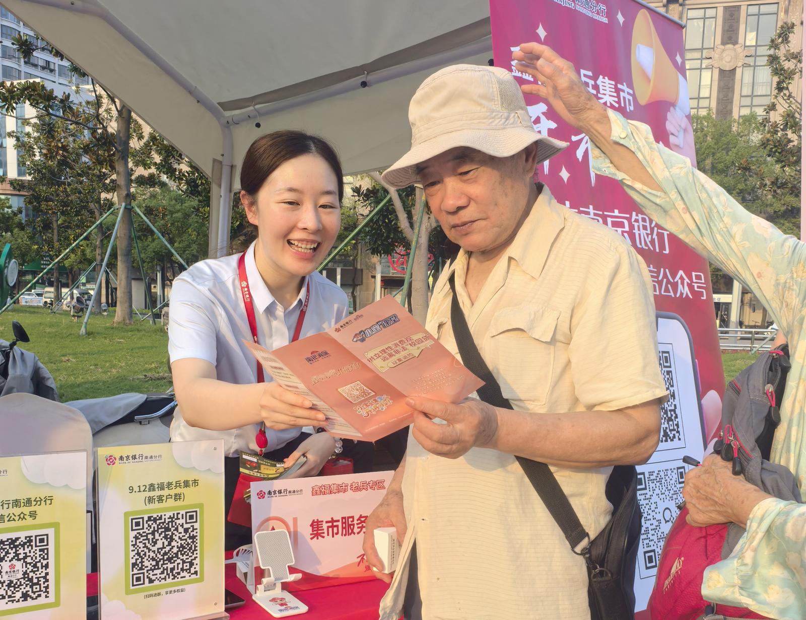 融入民生场景,拓展宣传阵地。南京银行南通分行营业部巧妙利用“老兵集市”等人流聚集场景,设立专属宣传展台,面向退役军人及周边居民开展金融知识普及。通过发放手册、案例讲解等方式,重点宣传非法集资和非法中介的危害,切实提升老年群体和退役军人的金融安全意识,实现金融教育与民生场景深度融合。