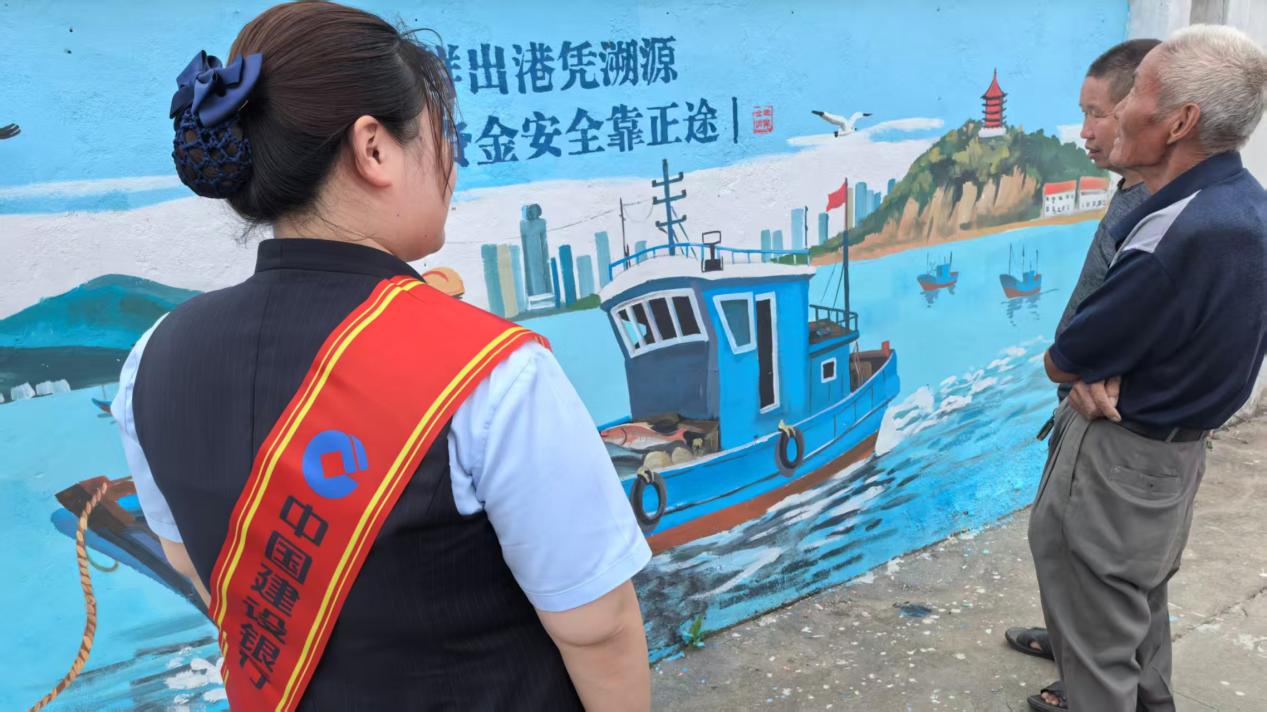 “江鲜出港凭溯源,资金安全靠正途”——走进青龙桥社区,一面色彩鲜活、寓意深刻的“金融明白墙”成为居民驻足热议的焦点。为打破传统金融宣传的刻板印象,崇川支行在活动前期便组建专项团队进驻社区,依托社区外墙打造特色宣传阵地。团队充分结合南通本地文化特色与乡村生活场景,创新采用“渔民捕捞作业场景+正规交易和谐画面”的创作思路,将南通长江边的港口、码头、渔船、江水波纹等常见元素转化为金融知识宣传载体。