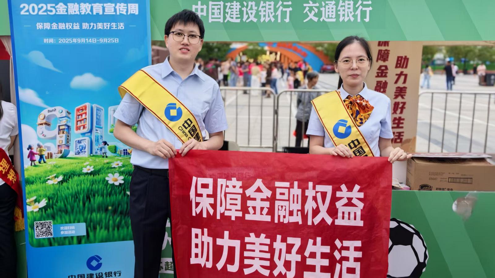 2025年9月,建设银行崇川支行积极响应国家金融监督管理总局号召,组织开展“金融教育宣传周”活动。9月20日,苏超足球比赛在南通中南体育广场激情上演,借此之机,崇川支行在广场外市集设立宣传展区,开展了一场别开生面的消保主题宣教活动,活动口号“保障金融权益 助力美好生活”格外醒目。