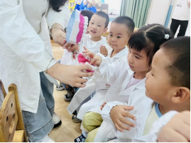 最让孩子们兴奋的,当属“小小牙医”角色扮演环节。志愿者带来了迷你牙医工具、白大褂,孩子们穿上小大褂,瞬间变身“小牙医”。他们小心翼翼地拿起牙具道具,对着同伴的“牙齿模型”模仿检查,有的还像模像样地说:“你的牙齿里有小虫子,要好好刷牙哦!”活动最后,志愿者为每个参与的孩子颁发了“小小牙医荣誉证书”,拿到证书的孩子们高高举起,脸上满是自豪。“我今天当牙医啦,以后我要好好保护牙齿!”大班的小朋友乐乐拿着证书,开心地跟老师分享。