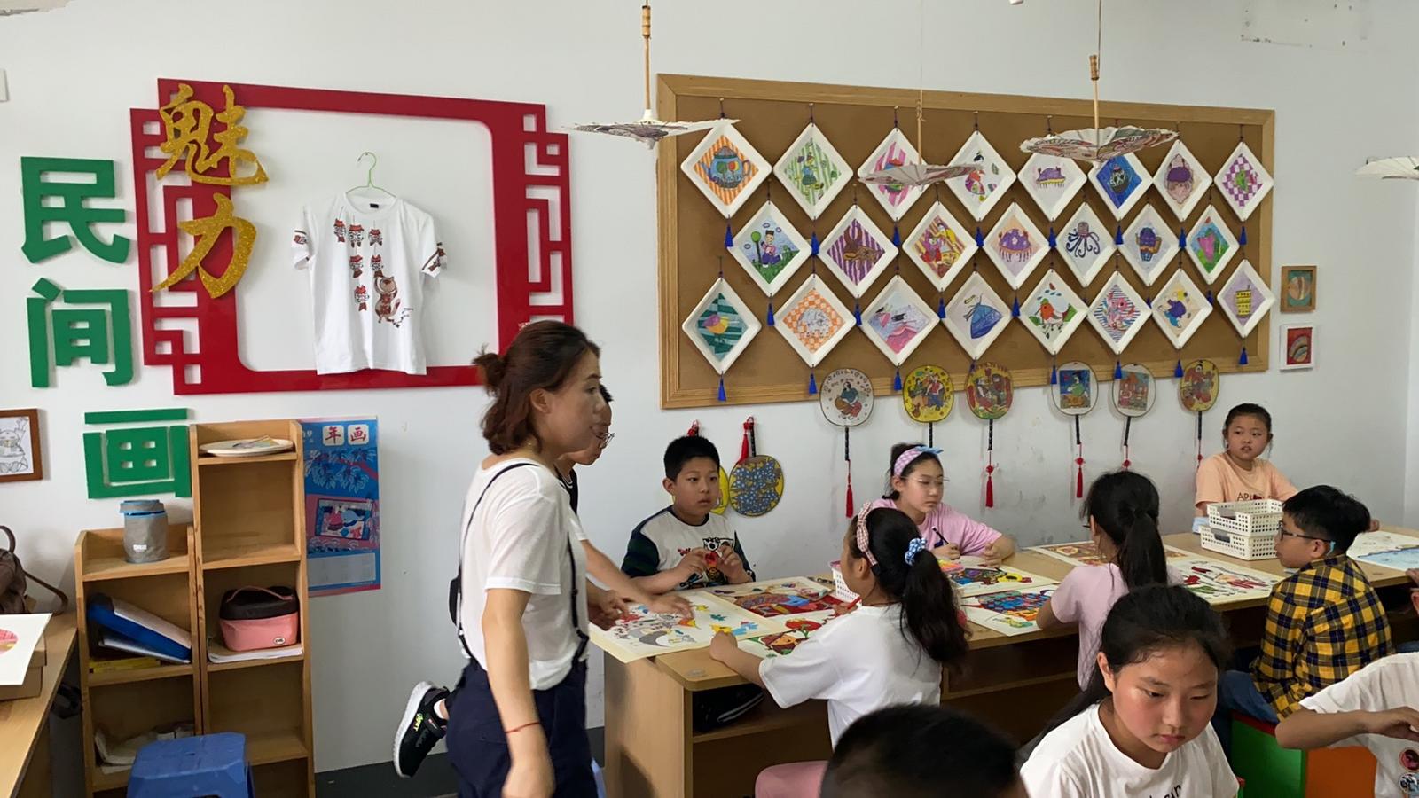 “除了暑期活动,针对‘传统文化进校园’,我们还常态化开展‘馆校共建’活动。”如东县文化馆美术摄影部主任、农民画作者张云珠介绍,该馆与如东县内乃至南通市的部分学校建立了长期合作关系,除了不定期安排农民画画家们走进校园,为孩子们传授、讲解农民画的创作技巧和文化内涵外,还会经常送展入校园,或者是邀请学校带领学生来文化馆农民画展厅,近距离欣赏农民画原作,亲身感受传统艺术的独特魅力。
