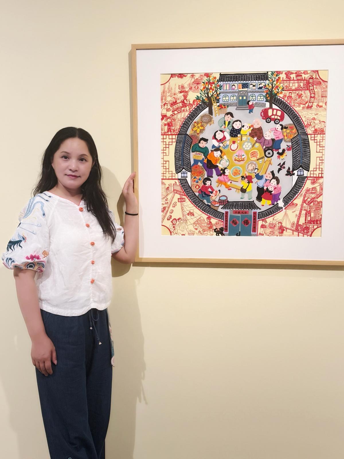 这幅充满温情的农民画是高金梅在2020年创作的,“灵感主要源于生活。”高金梅回忆道,小时候,每逢家中长辈寿辰,一家人都会聚在一起,为老人祝寿。“我就是想用画笔将这份温暖记录下来。”《其乐融融》诞生以来屡获认可,曾入选中宣部、中国美术家协会联合主办的“新年画新生活”全国画展和“首届中国乡土绘画(农民画)作品展”,还登上过《人民日报》,赢得了广泛关注和赞誉。