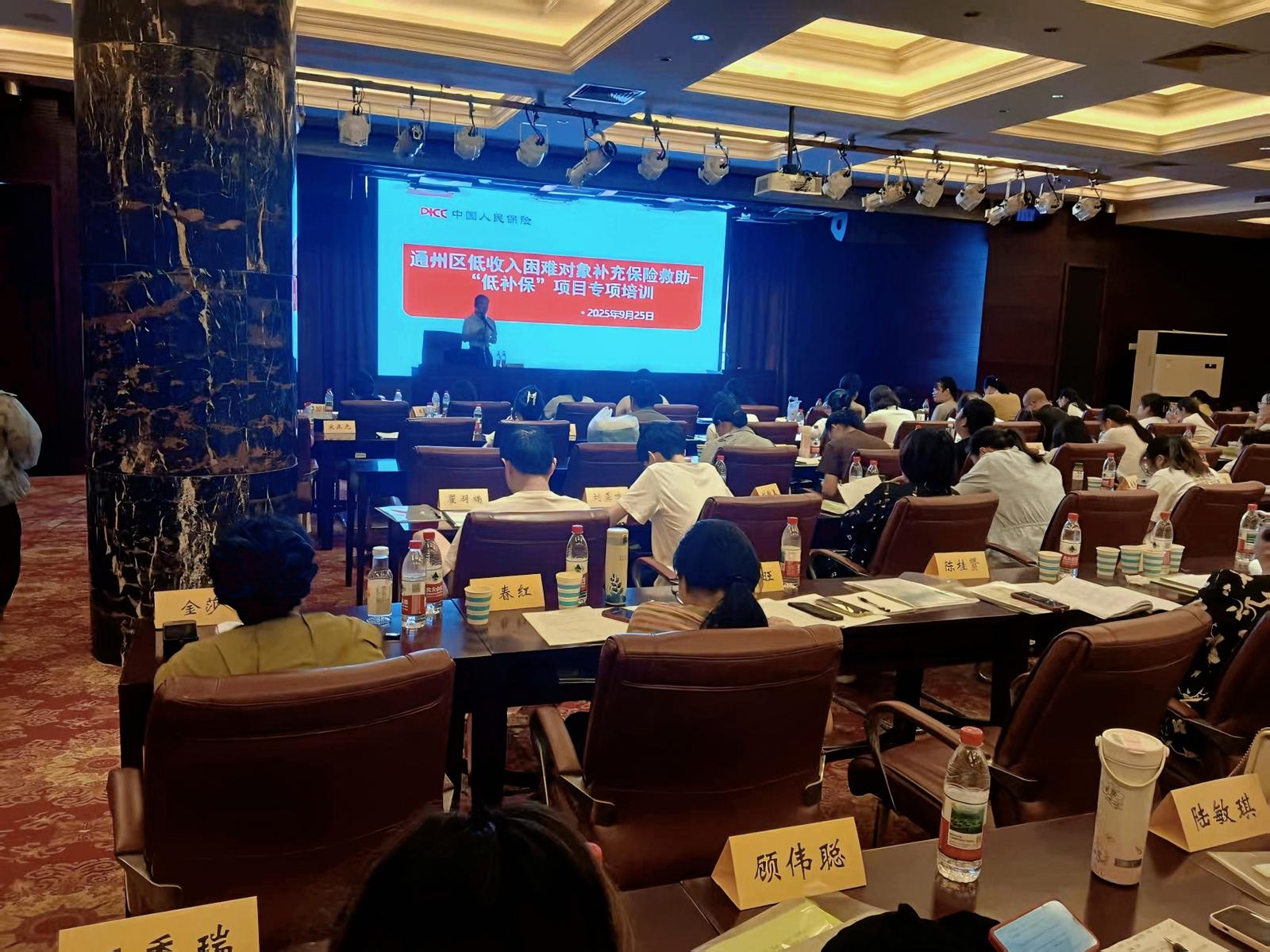 为扎实推进南通通州区2025年低收入困难对象补充保险救助项目(以下简称“低补保”项目),提升基层服务能力,9月25日,人保财险通州支公司联合区民政局,共同组织召开了面向全区14个乡镇街道基层干部的专项培训会。