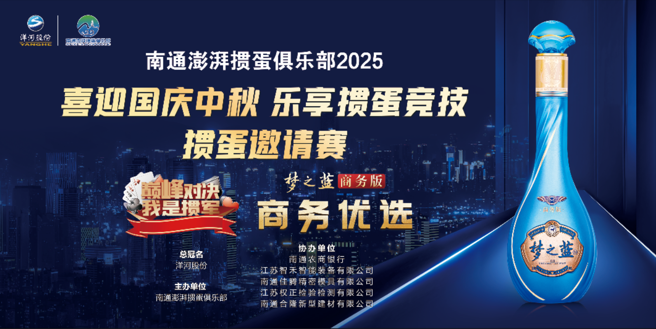 本次活动由南通澎湃掼蛋俱乐部主办,洋河股份总冠名,南通农商银行、江苏智禾智能装备有限公司、南通佳腾精密模具有限公司、江苏权正检验检测有限公司、南通合隆新型建材有限公司携手协办。