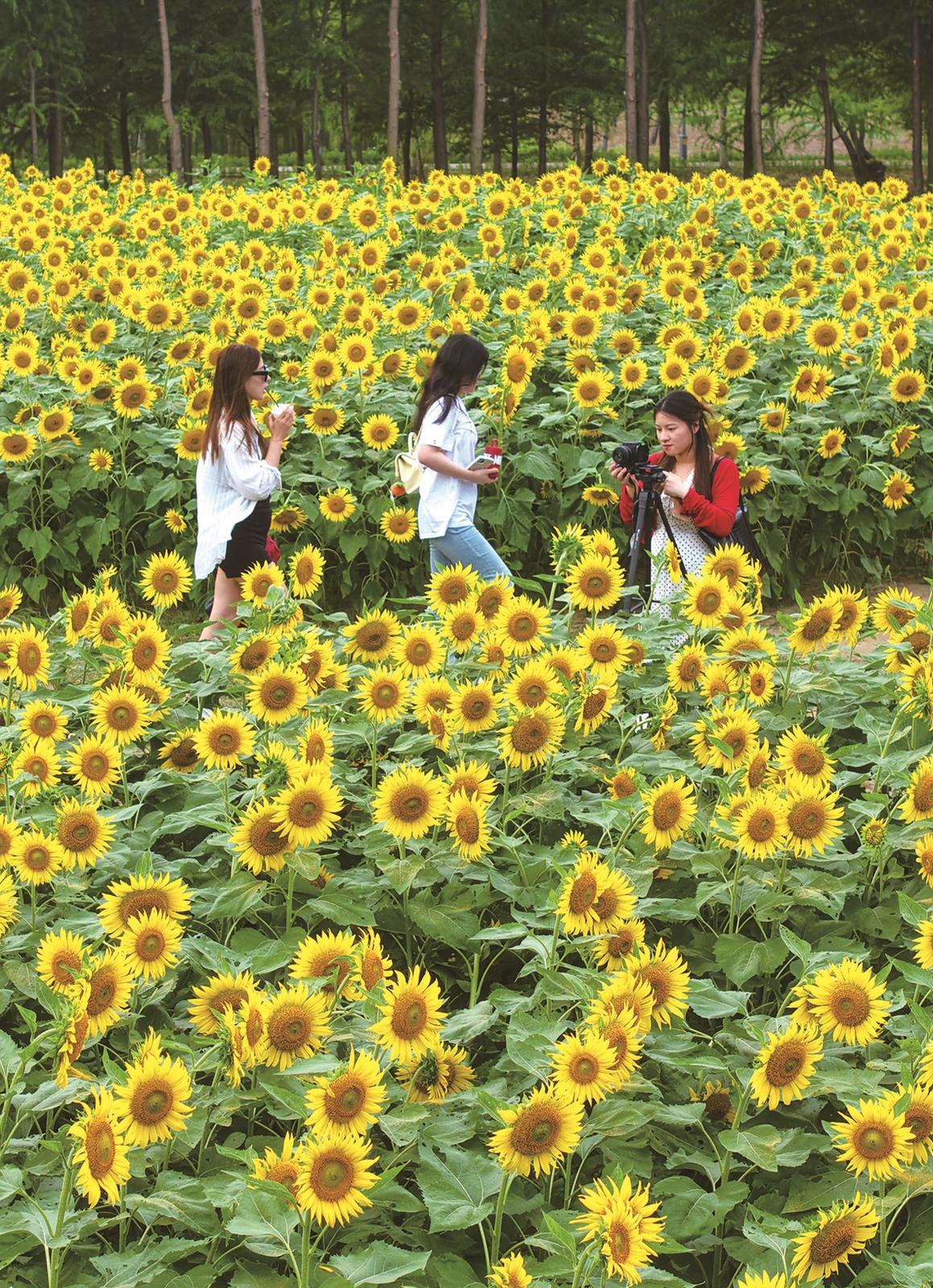 22日,军山绿野,初秋的阳光为大地调配了最温柔的滤镜,万千朵向日葵扬起金黄的脸庞,形成一片花海。游人的身影点缀其间,欢声笑语在花田里荡漾。 范鎧毓