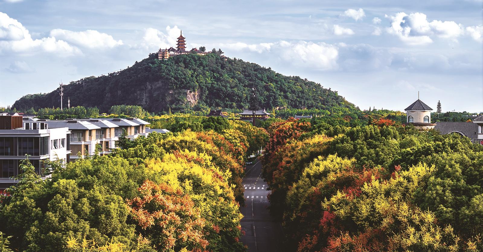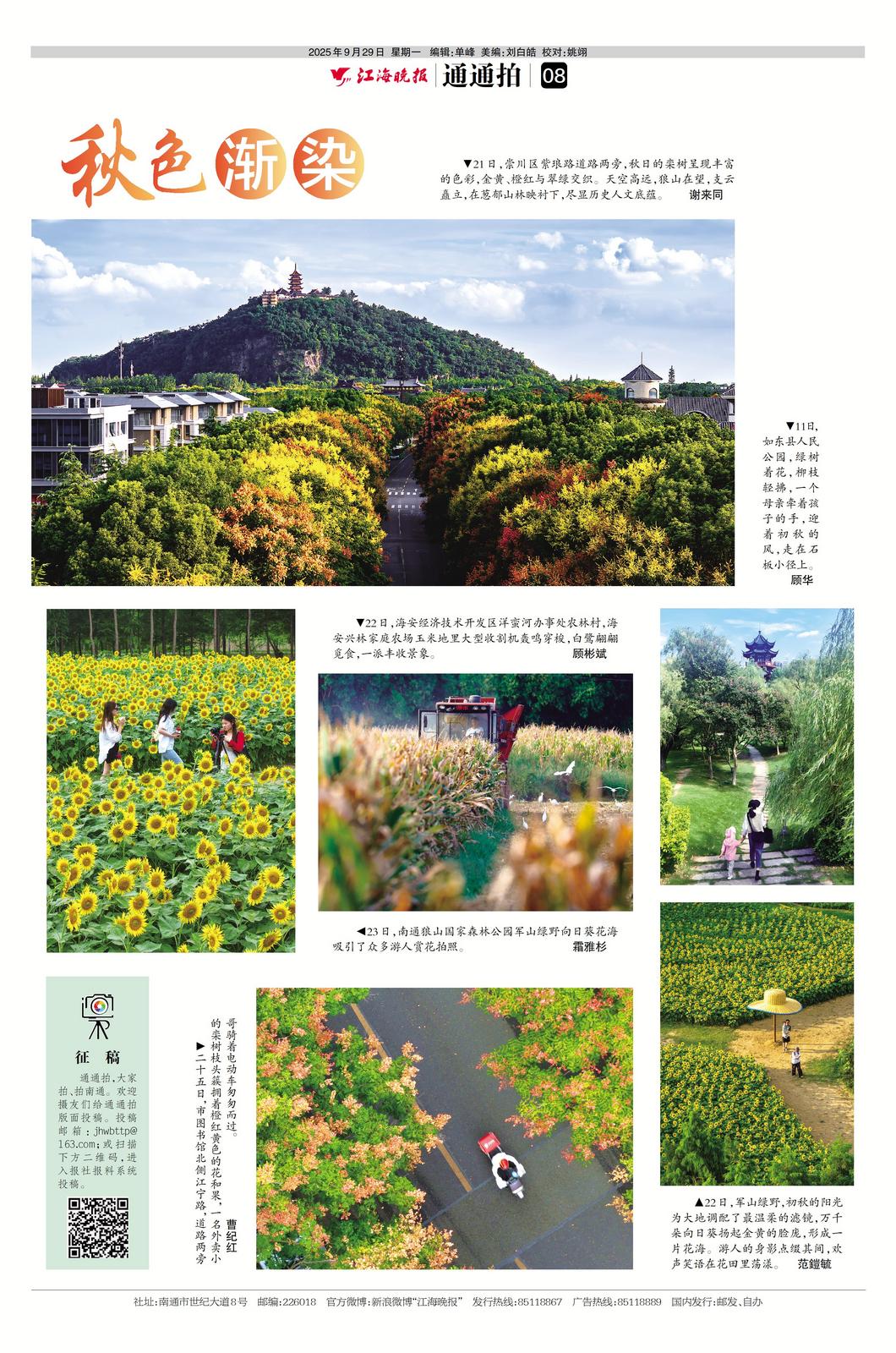 21日,崇川区紫琅路道路两旁,秋日的栾树呈现丰富的色彩,金黄、橙红与翠绿交织。天空高远,狼山在望,支云矗立,在葱郁山林映衬下,尽显历史人文底蕴。 谢来同