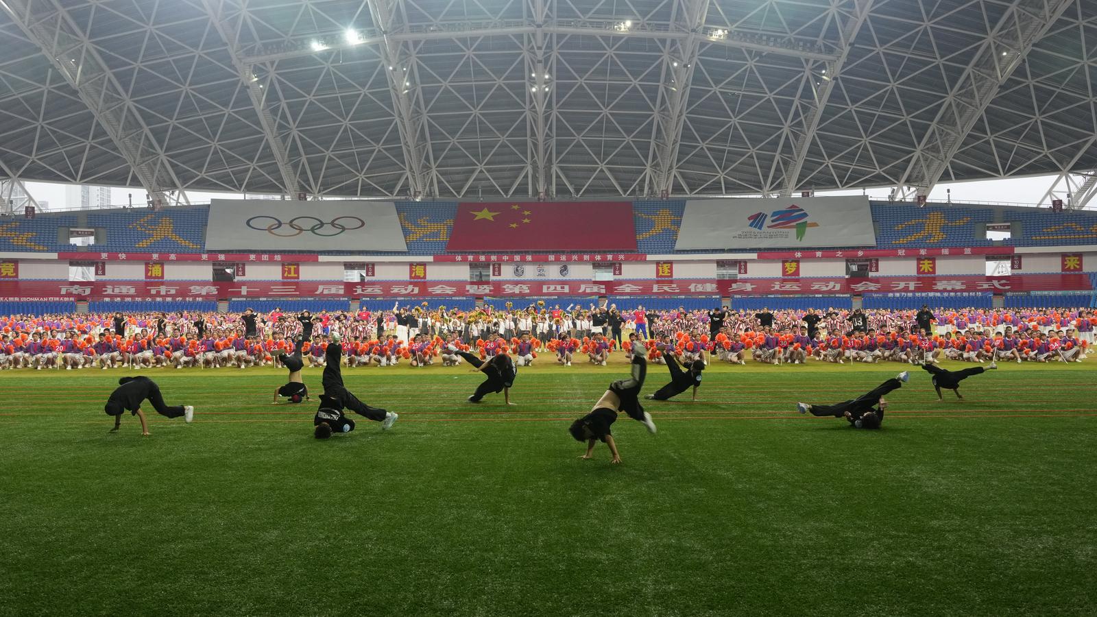 “为了让流动的绸带有如长江奔腾、黄海浩瀚,我们用两周时间反复练习‘风火轮’的配合动作,最终呈现出理想的效果。”南通职业大学建筑工程学院学生肖金辉说,“这段经历让我感受到了团队协作的力量和体育运动的魅力。”