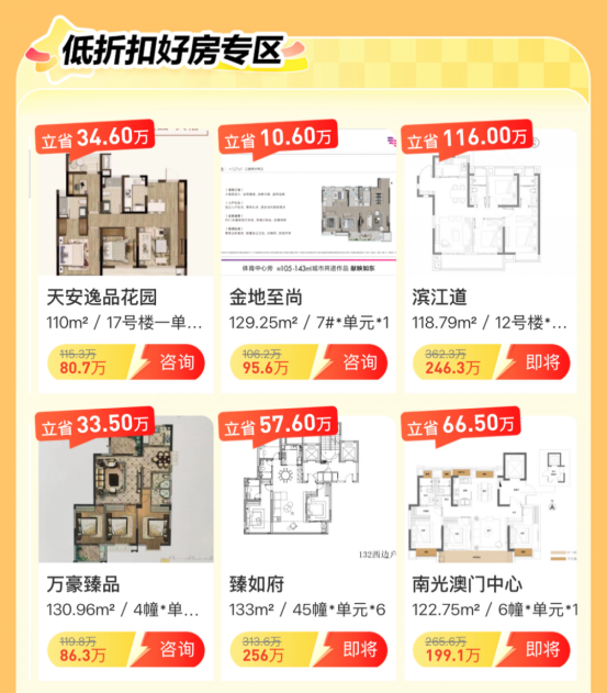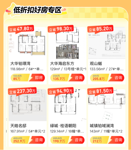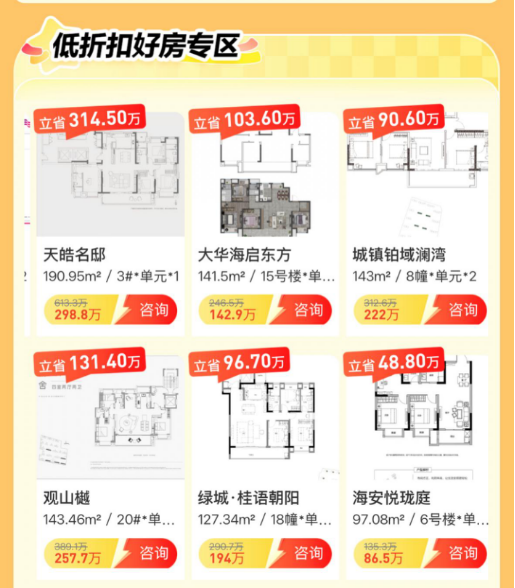 活动期间,贝壳还联合品质开发企业,推出百余套新房特价房,优惠力度最大的一套房源较原价便宜314.5万,优惠面广,力度显著。既覆盖改善型需求,也满足刚需客户的实际选择,致力于帮助不同购房人群都能在购房节中高效找到自己心中的“好房子”。