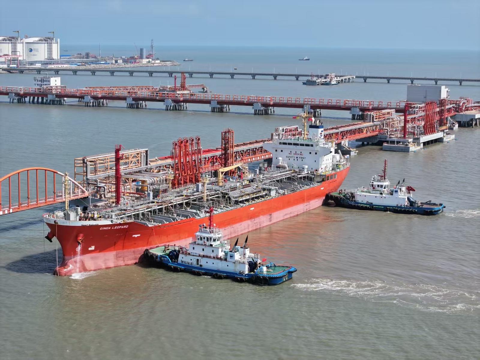 记者了解到,新材料作为如东三大主导产业之一,港区份额占到六成。截至10月5日,今年如东洋口港已累计靠泊液化品原料船舶296艘次,新材料原料吞吐量突破300万吨。这些原料涵盖乙二醇、对二甲苯、丙烯腈等关键品类,通过口岸快速接卸后,直接供给九州星际、嘉通能源等本地重点企业,为如东500亿级安防与特纤产业集群、高端化工新材料产业链提供了稳定的原料支撑。