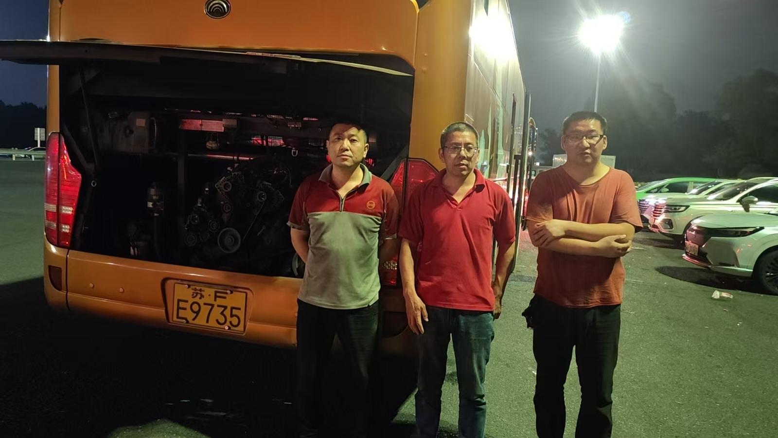 22时许,当城市的灯火渐熄,飞鹤汽车修理厂的抢修热线骤然响起。电话那头是合作单位快客公司焦急求助:其杭州班线的一辆客运大巴在行驶至苏通大桥南收费站附近时突发故障,被迫停驶,若不及时修复,将直接影响次日繁忙的客运班次。