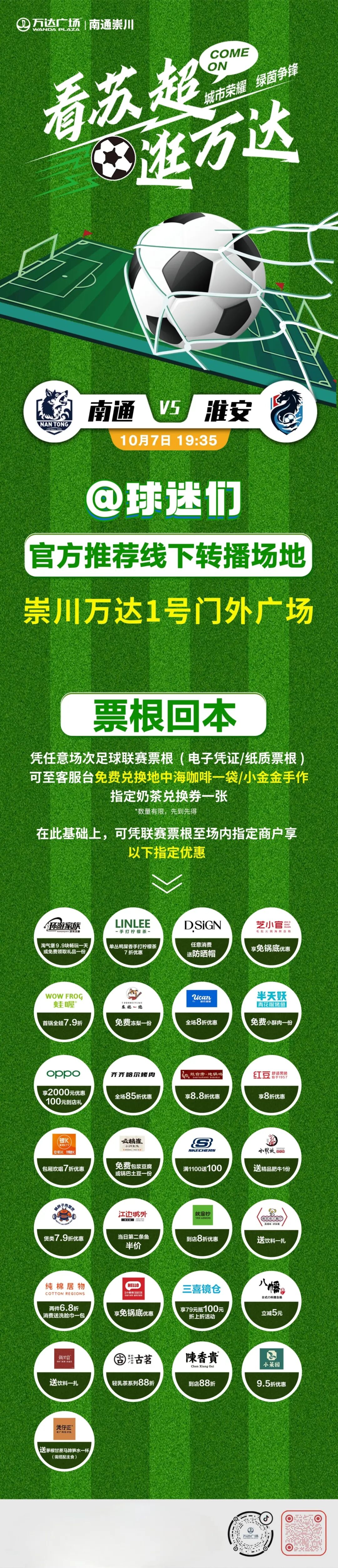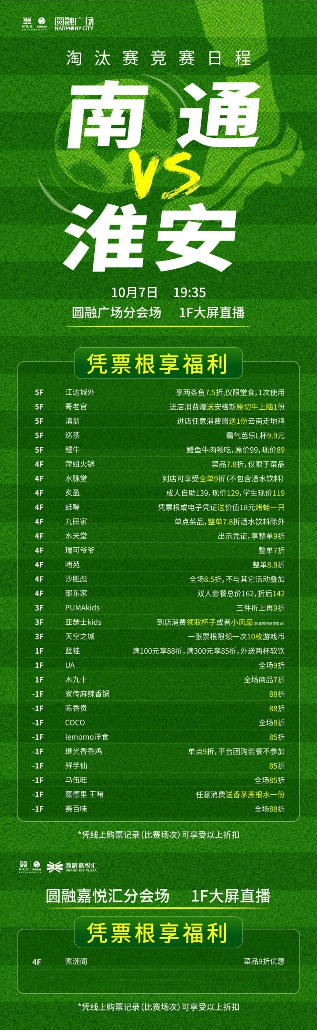 住宿:联赛期间入住南通五洲皇冠酒店酒店的球迷朋友,凭2025年城市足球联赛票根享受以下优惠政策: