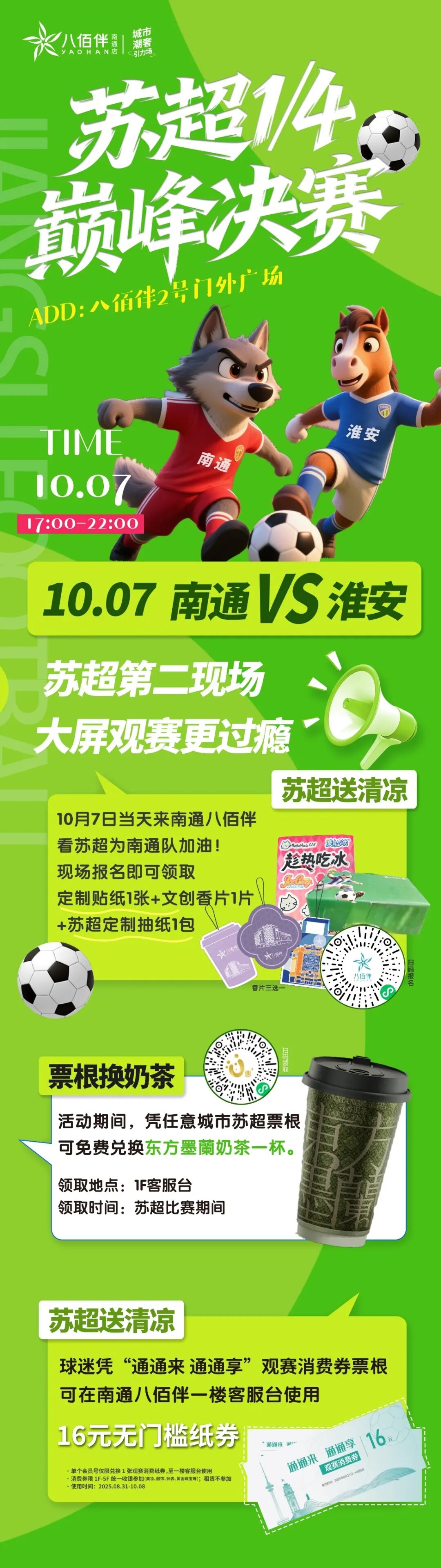 1、一票双享!凭苏超票根免费领燕京啤酒!拓展“票根+”消费:江苏城市足球联赛期间,持有联赛13个设区市各场次比赛票根的观众(限前1000名),可免费兑换一听燕京鲜啤。(每日限50名,先到先得)