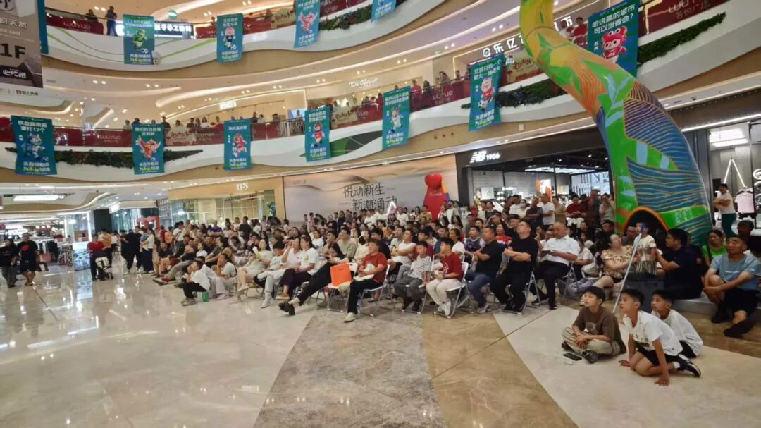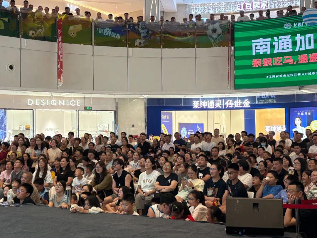 晚上七点未至,海门龙信广场的“第二现场”早已被人潮与热情点燃。巨型LED屏幕前座无虚席,来晚的球迷踮起脚,在攒动的人影中寻找观赛角度。“一个人在家看球,进球了只能捶沙发,丢球了只能干着急。但在这儿,每一记抢断、每一次防守,都能引爆全场的欢呼!”球迷黄凯旋兴奋地说。这份高涨的人气,也实实在在转化为了消费活力。据龙信广场工程物业部经理谢东琴介绍,自“苏超”开赛以来,每逢南通队的比赛,龙信广场都会设置“第二现场”,几乎每场都带动客流和整体消费增长超10%,球场的热浪蔓延成了商场的消费热浪。