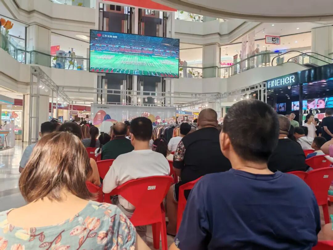在如皋市吾悦广场,球迷们紧盯大屏幕,随着球员的激烈拼抢或欢呼雀跃,或扼腕叹息。当进球的那一刻,整个商场瞬间沸腾,掌声、欢呼声交织在一起。比赛间隙,资深球迷王先生激动地说:“这种在商场集体看球的感觉太美妙了,大家因为共同的热爱聚在一起,为支持的球队加油助威,那种氛围是在家里独自看球完全无法比拟的。”年轻球迷小李也兴奋地表示:“虽然没去比赛现场,但在这里,每个人都是第十二人。”