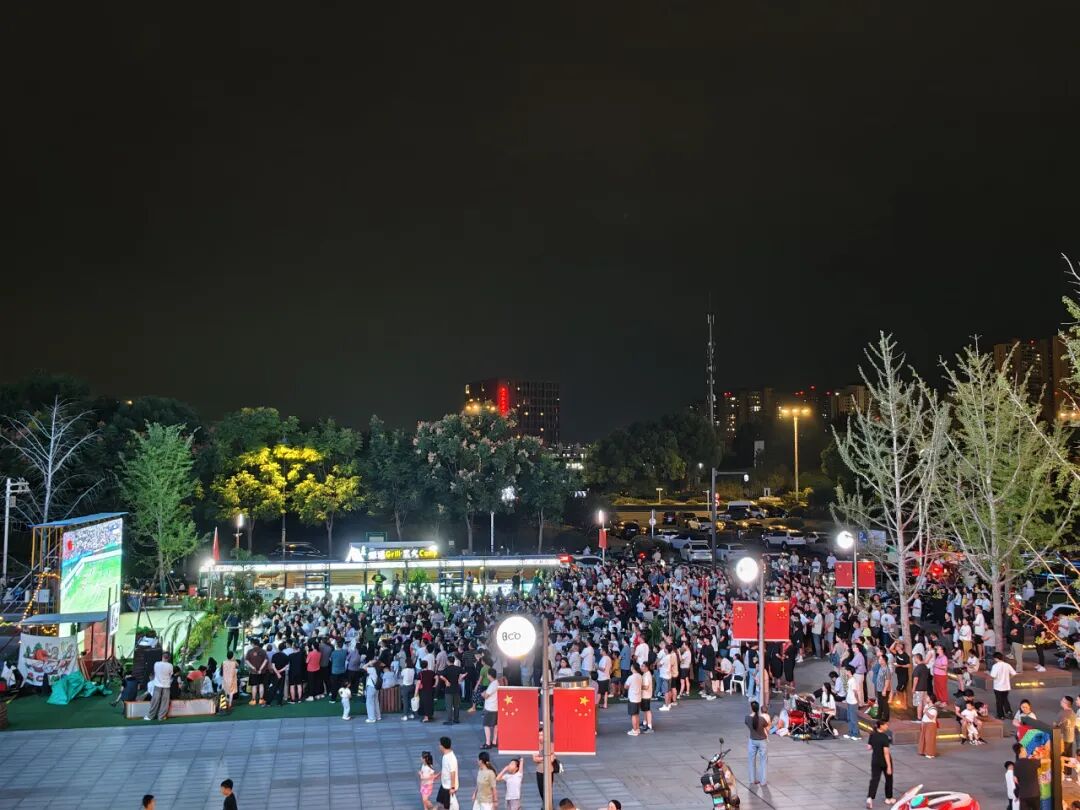 比赛进行到第20分钟,南通队敲开了淮安队的大门,市民王先生激动地与家人举杯相庆。国庆中秋“双节”假期进入尾声,在这个激情的夜晚,有众多市民朋友携家带口来到星湖城市广场喝啤酒、吃烤肉、看比赛。据不完全统计,南通开发区组织“第二现场”3个(永旺梦乐城内场、星湖101广场、星湖城市广场),吸引观众超9400人。