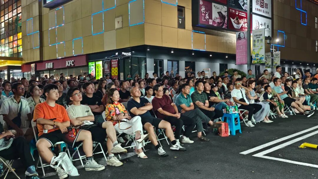 晚上7点左右,南通创新区湖山广场入口处,人们步履匆匆,赶着抢前排。四面大屏前,市民游客坐得满满当当,人流一直延伸到外围草坪。大家或聚在一桌有吃有喝,或席地而坐专心观赛,或直接搭起帐篷,享受赛事激情与湖畔清凉的碰撞。