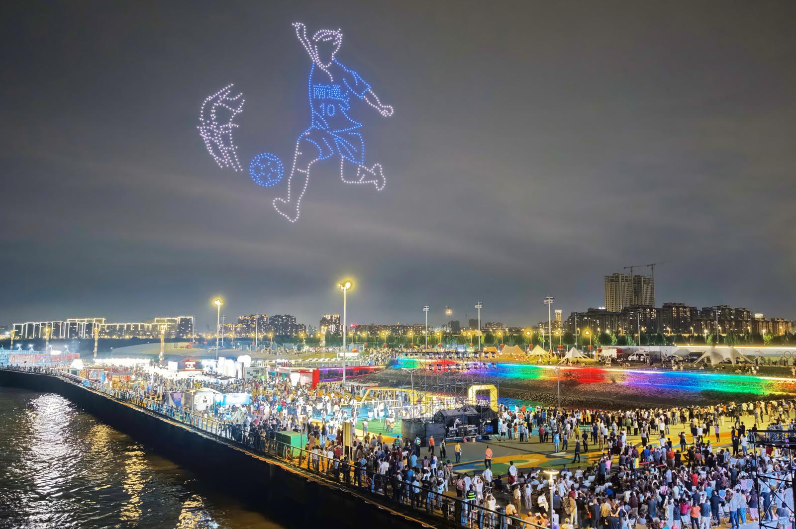 “落霞与孤鹜齐飞,秋水共长天一色。”国庆期间,市民游客来到启用不久的南通长江体育公园,便能领略到这番美景。荡着江畔的秋千、伴着晚风深呼吸,看着江上篮球场的角逐,感觉诗与远方就在身边。10月5日,央视《东方时空》栏目聚焦在这里举办的南通文旅乐购嘉年华活动——连续7天的主舞台表演、千架无人机秀和主题巡游活动,为市民游客打造出不一般的潮流新场景。