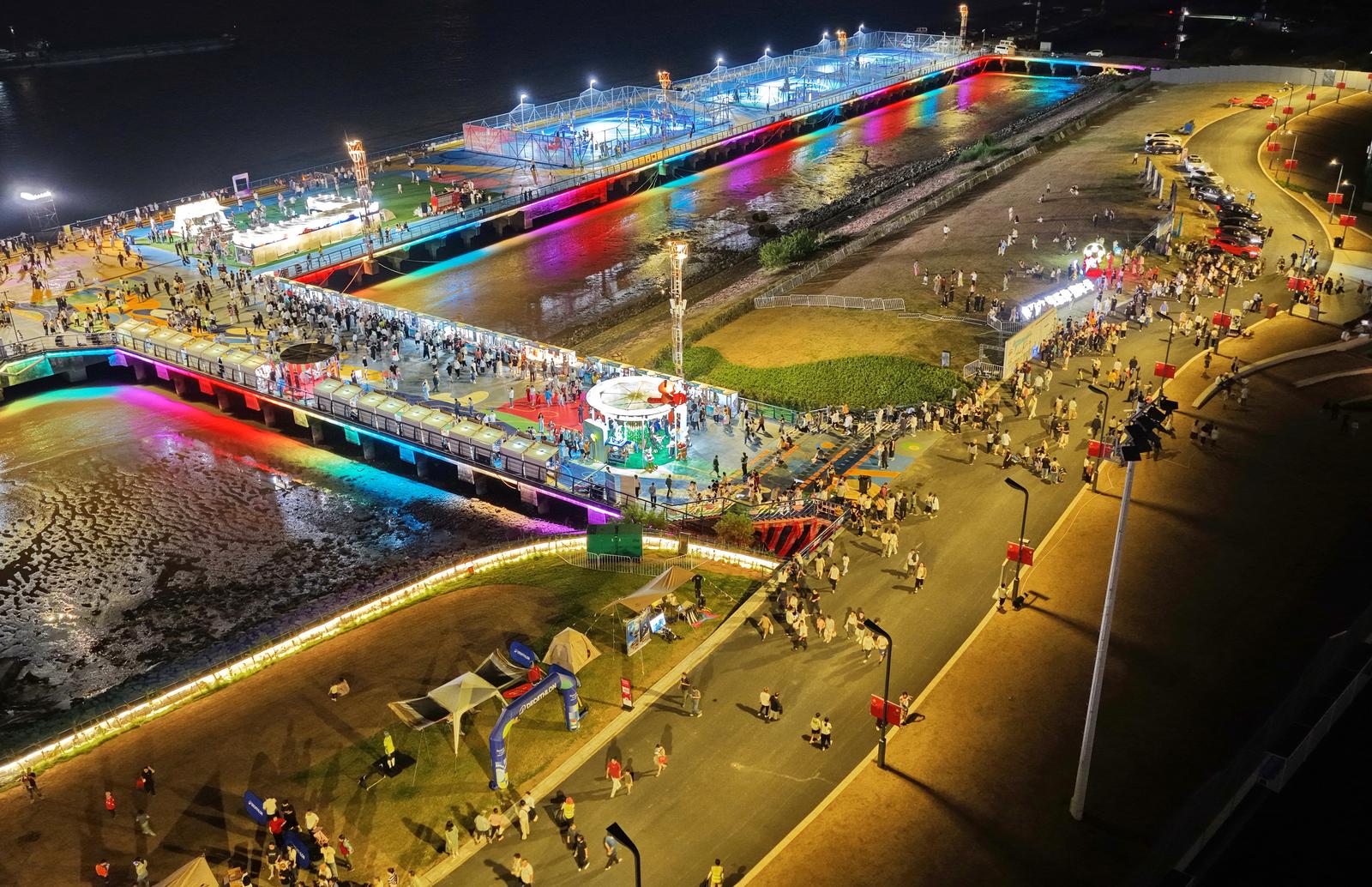 与此同时,沿线的碧海银沙、黄金海滩、启唐城、林克斯温泉小镇、栟茶古镇、森林野生动物园、洲际梦幻岛、龙游湾等一批投资超10亿元的标志性旅游项目相继建成开园;滨江日落、“长江口第一缕阳光”、海上灯塔等网红打卡点持续吸引游客驻足;小洋口、圆陀角、开沙岛等省级旅游度假区跻身全国知名文旅目的地行列,“走缤纷百里 品黄海风味”旅游线路获国家文旅部推荐,成为展示南通文旅魅力的重要名片。
