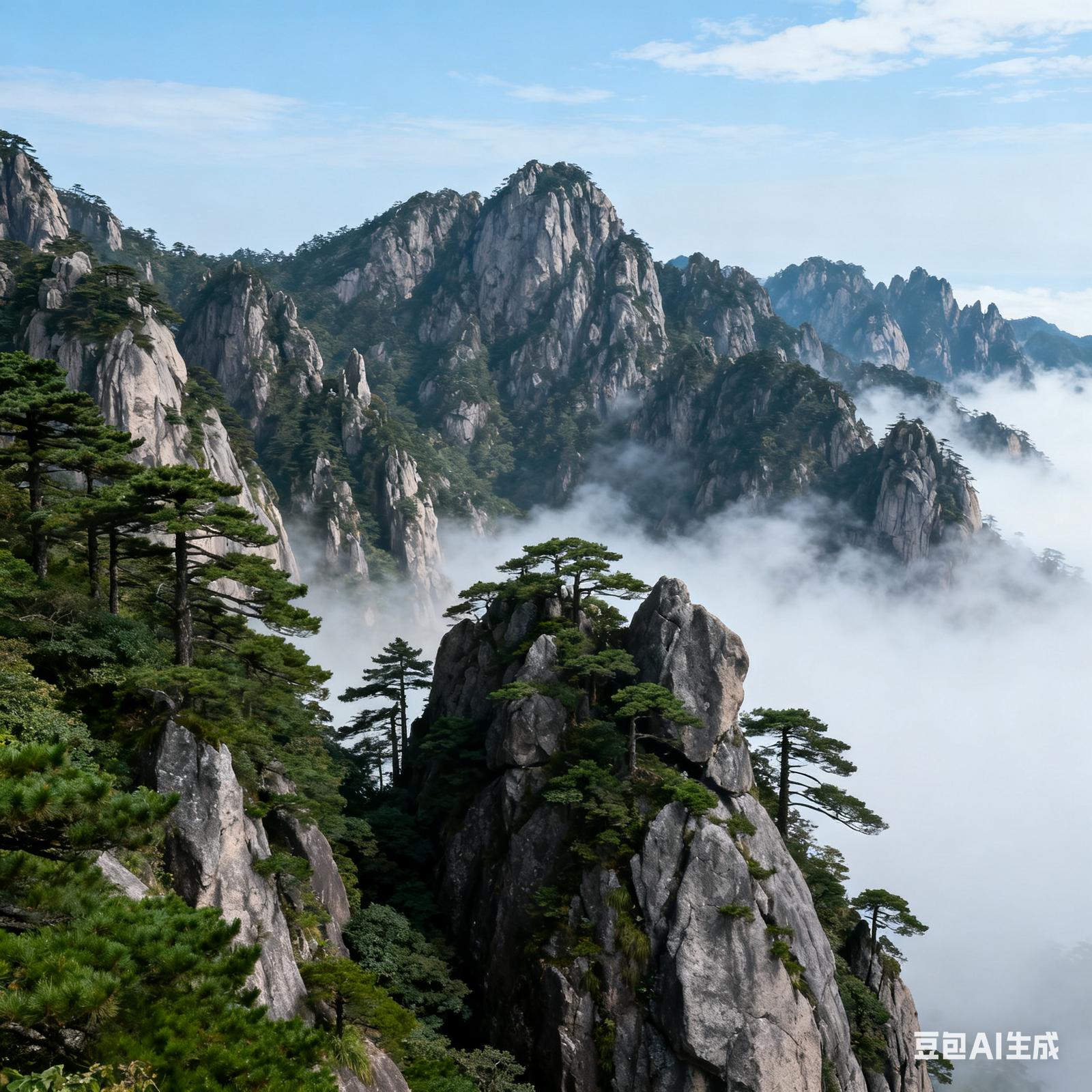黄山坐落于皖南,既有江南之秀,亦见山岳之奇。漫山树木葱茏、枝叶纷披,唯独到了山腰处,偶尔裸出一片黝黑山岩,宛若上天执笔,蘸一点徽墨,于青绿画卷中不经意落下一痕。松风自远处徐来,拂动竹梢,飒飒作响。山间溪水淙淙不绝,整座山因这水声而愈发灵动起来。