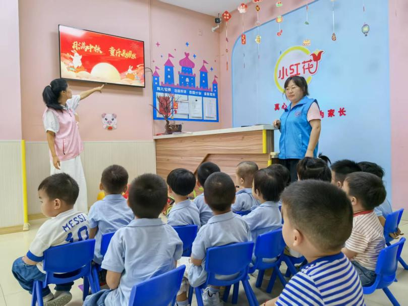 蓉塘社区联合小红花早教中心开展“月满中秋 童乐融融”活动。志愿者通过生动有趣的动画短片、色彩鲜艳的PPT,向孩子们娓娓道来中秋节的起源与习俗。在 “中秋习俗连连看” 小游戏中,孩子们积极抢答,快速将 “吃月饼”“猜灯谜”“赏月” 等习俗与对应的图片匹配,在玩乐中轻松掌握中秋节的传统文化知识。