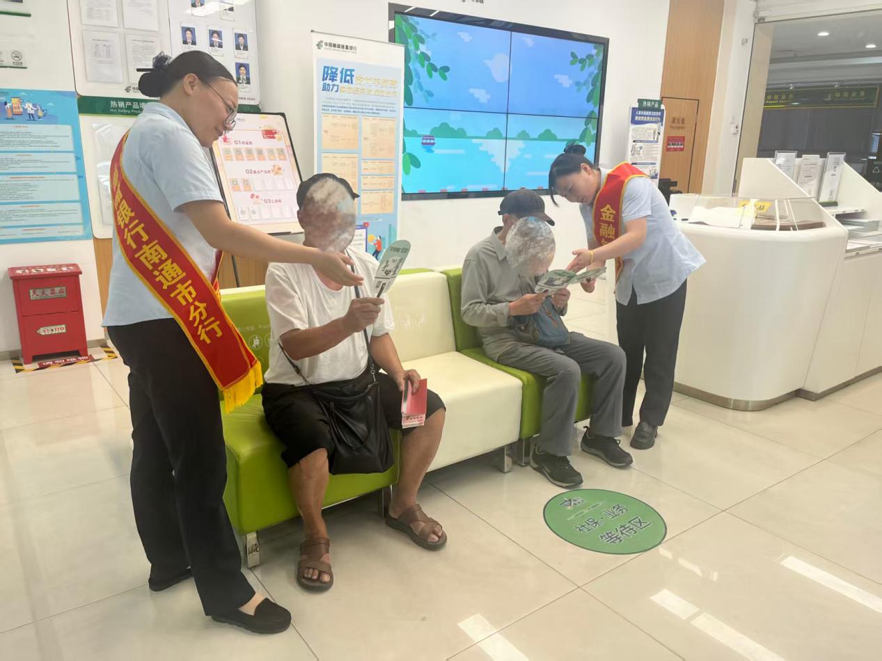 活动现场亮点纷呈!该行在辖内各个网点的服务区域,显眼位置均整齐摆放着定制款的清凉扇子。这些扇子设计新颖独特、清新雅致,而扇面上更是别有洞天,印满了丰富且通俗易懂的金融知识——从如何有效防范电信网络诈骗的小妙招,到精准识别非法集资陷阱的方法;从个人征信的重要性及维护要点,再到理性理财的各种实用小技巧等等,全方位覆盖了市民日常金融生活的高频需求。客户们在轻轻摇动扇子纳凉解暑的同时,便能自然而然地浏览学习到这些金融知识,真正实现了寓教于乐、轻松掌握。
