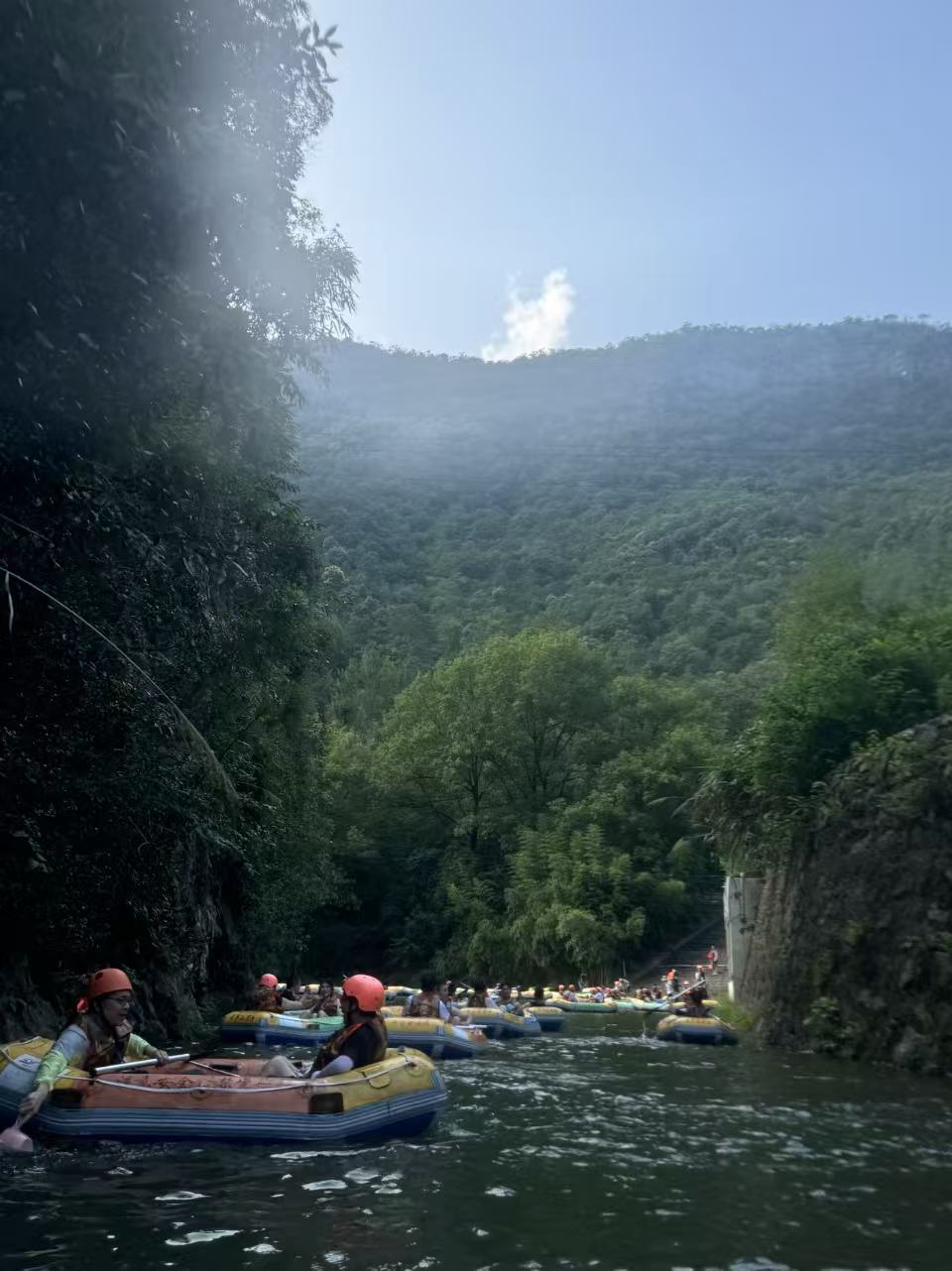 “由于我和闺蜜选择的是‘窝囊漂流’,基本上就是身体被固定好或坐或躺在竹筏上的模样,完完全全跟着或上或下的湍流走,水溅湿了脸庞、打湿了衣裳,可是人却不但不害怕还高度兴奋,感觉和自然界的山山水水真正融会在一起,那种无法言说的酣畅淋漓之感油然而生,让你觉得最好这样的漂流就这样一直持续下去,无休无止。那种感觉太美太好了!”陈菲菲感叹。