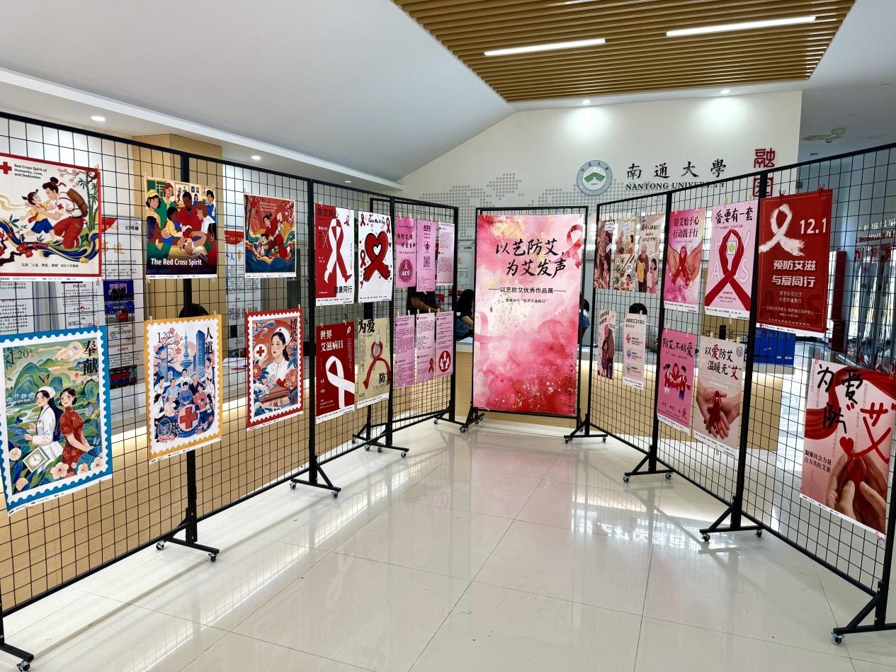 近日,南通大学艺术学院红十字会在学校融园“一站式”学生社区,组织开展第二届“以艺防艾”优秀作品展。本次展览集中展示了南通大学学生创作的26张防艾设计海报,海报内容聚焦于艾滋病的传播途径、感染症状以及预防措施等重要知识,旨在增强大学生对艾滋病的防范意识,从而有效降低感染风险。