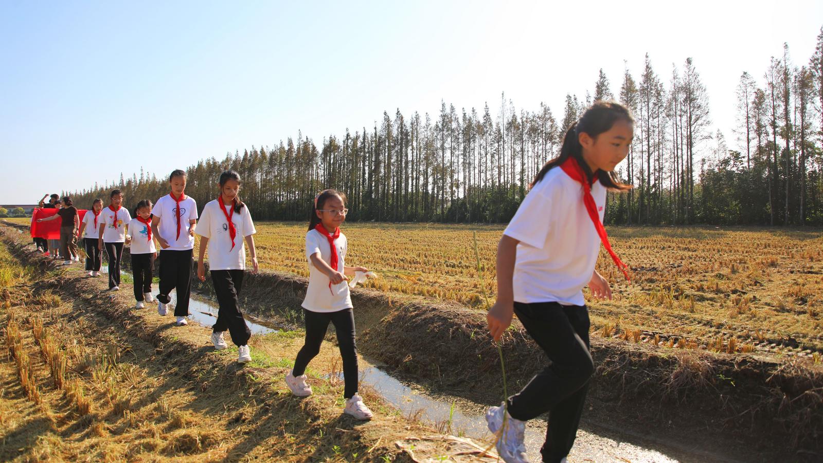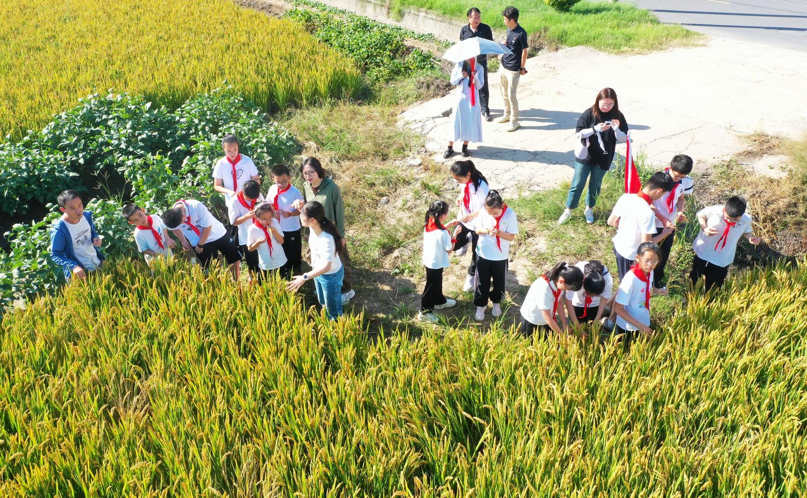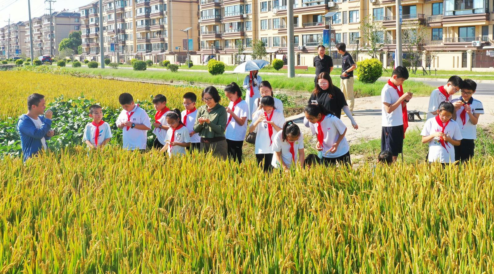 10月10日,江心沙农场水稻开镰,迎来海门区第一实验小学“稻田研学”寻访伟大成就的20余名师生打卡研学和现场观摩。小学生们在农业技术人员的讲解下了解水稻生长情况和农业现代化,通过可观可感的实景教学,赋能成长。
