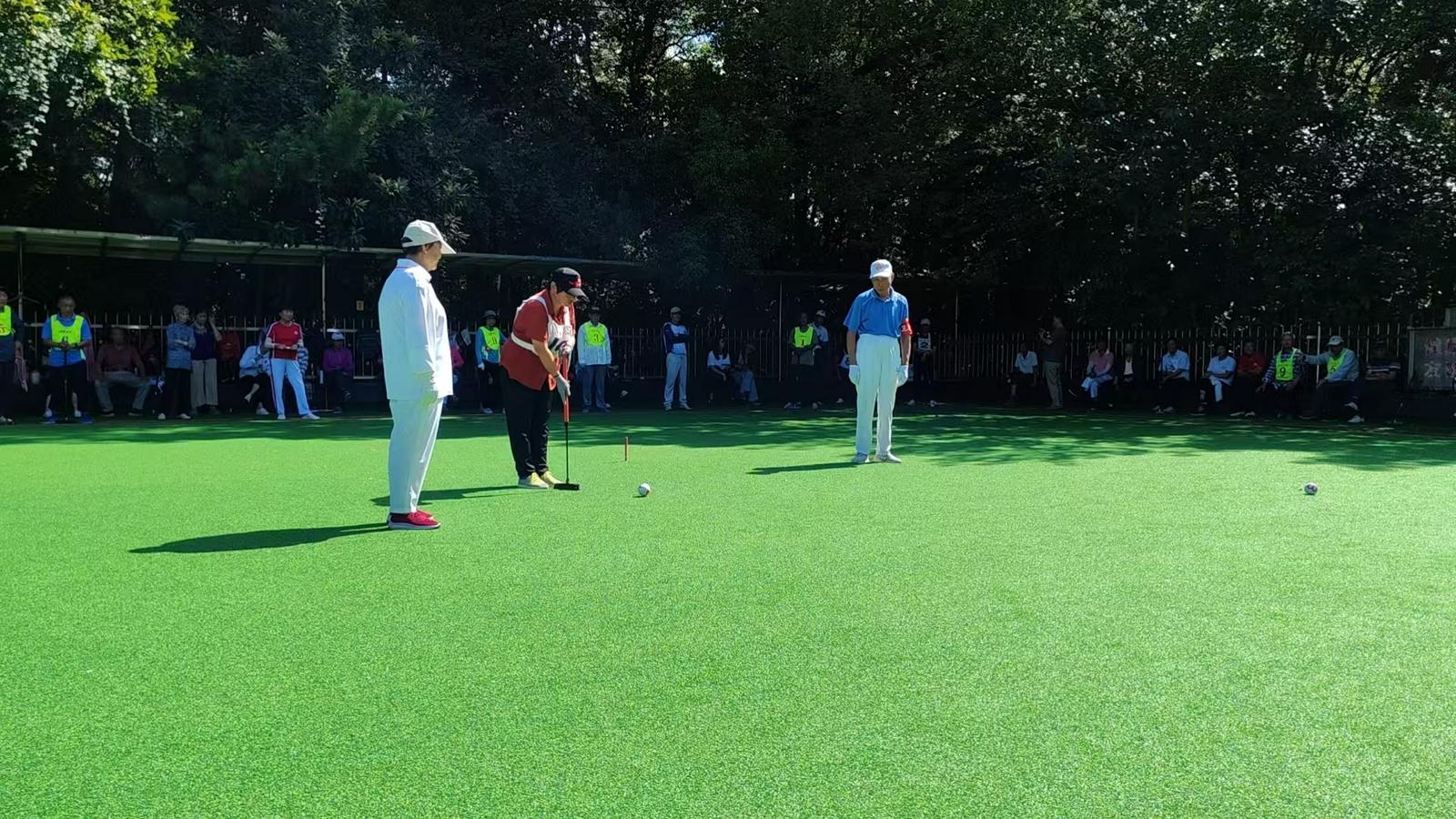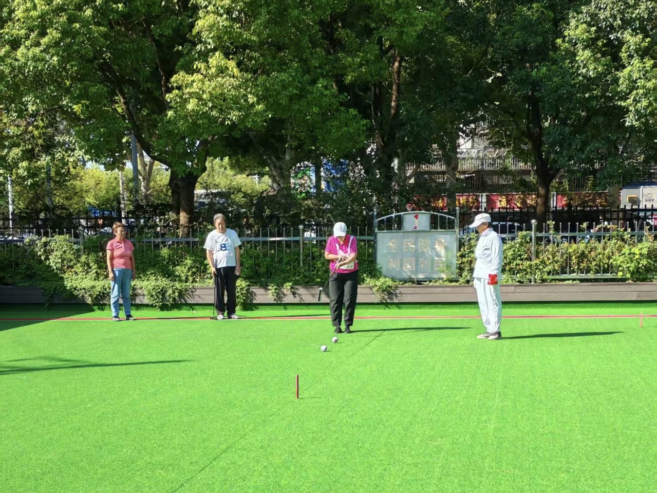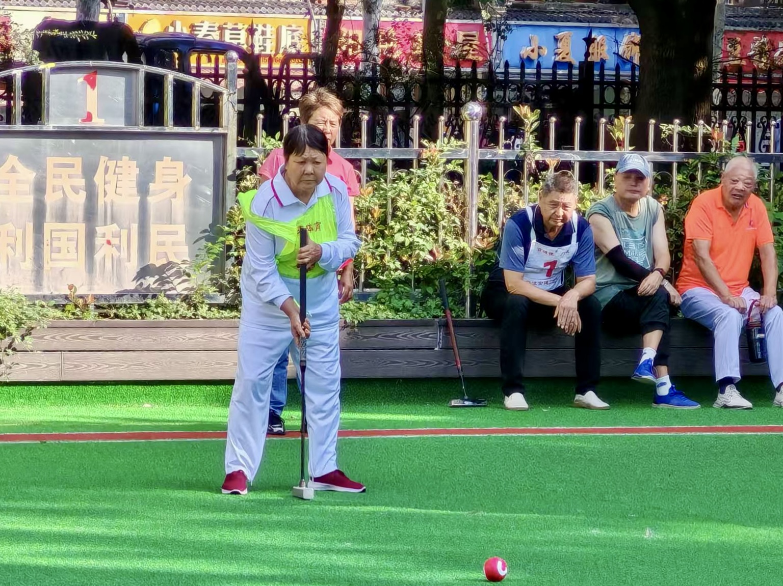 随着裁判哨声响起,比赛正式开始。赛场上,老同志们手握球杆,瞄准、击球,动作娴熟。“我打门球有15年了,不仅锻炼了身体,还认识了一群志同道合的老伙计。”来自幸福街道的张大爷今年76岁,是门球队的老队员了,“每次比赛我们都很开心,输赢不重要。”