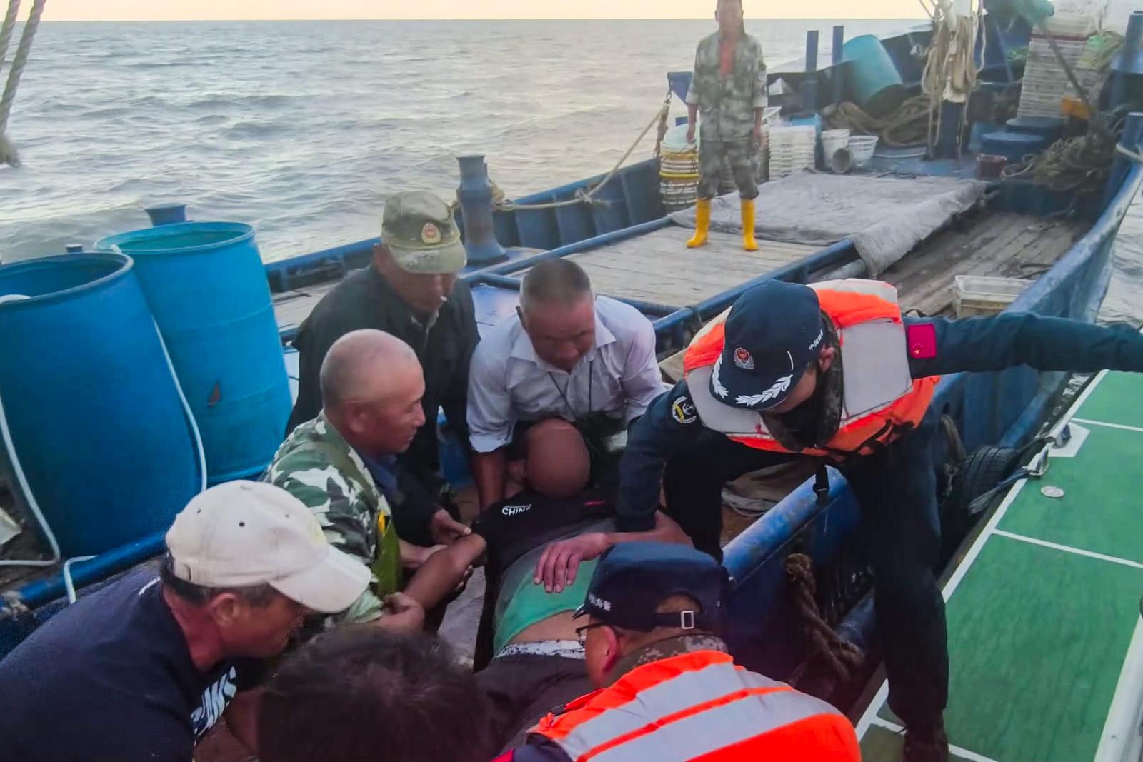 8日,南通海警局快速响应,及时救助一名休克渔民。
