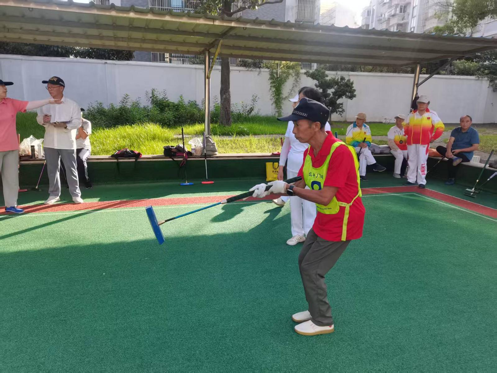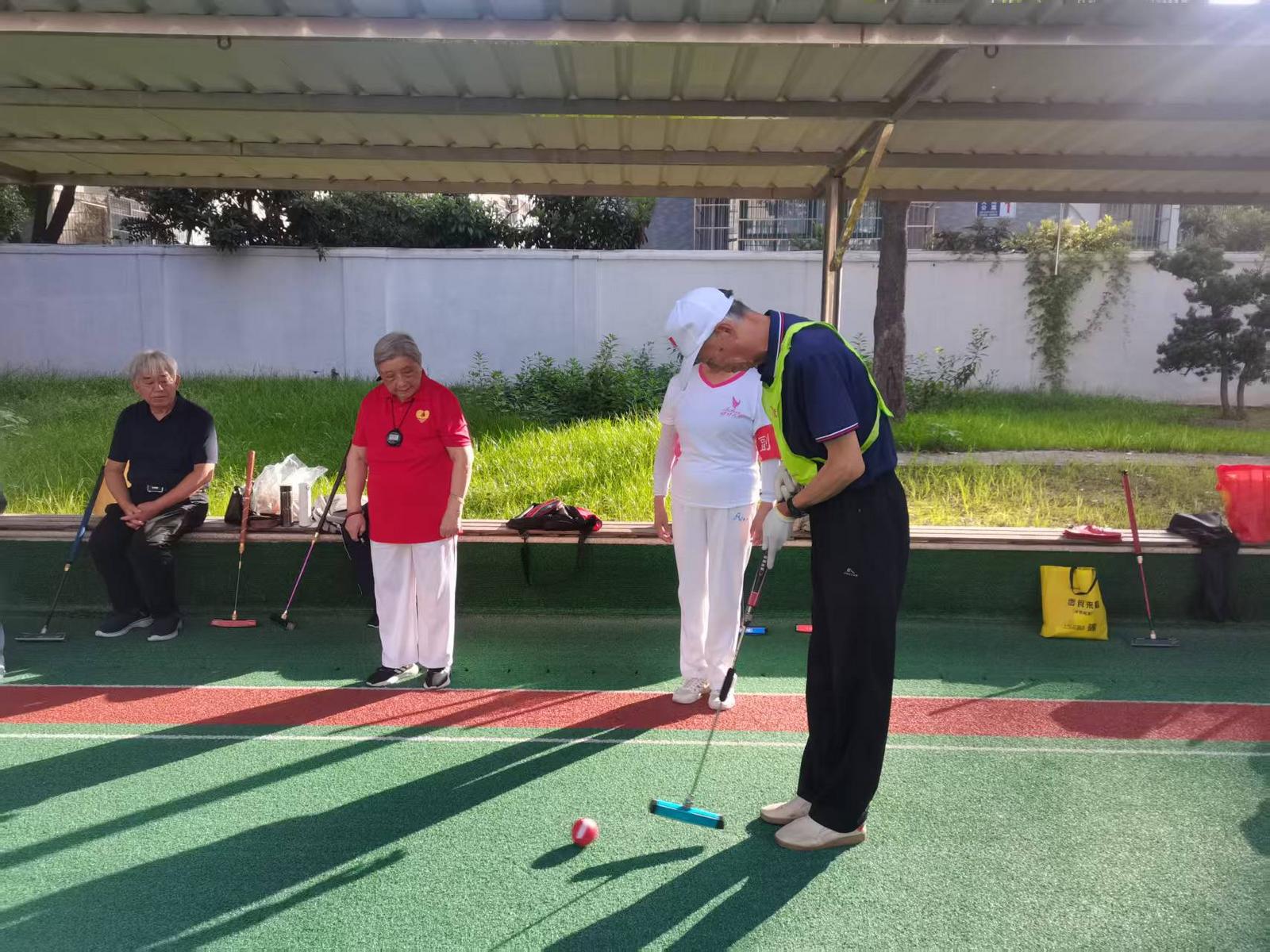 球场上,老同志们精神矍铄,身手矫健,挥杆对垒沉着冷静。每一次精准的击球、巧妙的送球都展现出他们精湛的技艺和丰富的经验。赛场边,观战的队员和朋友们也为每一个好球鼓掌喝彩,相互交流战术心得,其乐融融。整个赛场洋溢着和谐、快乐、健康的气息。