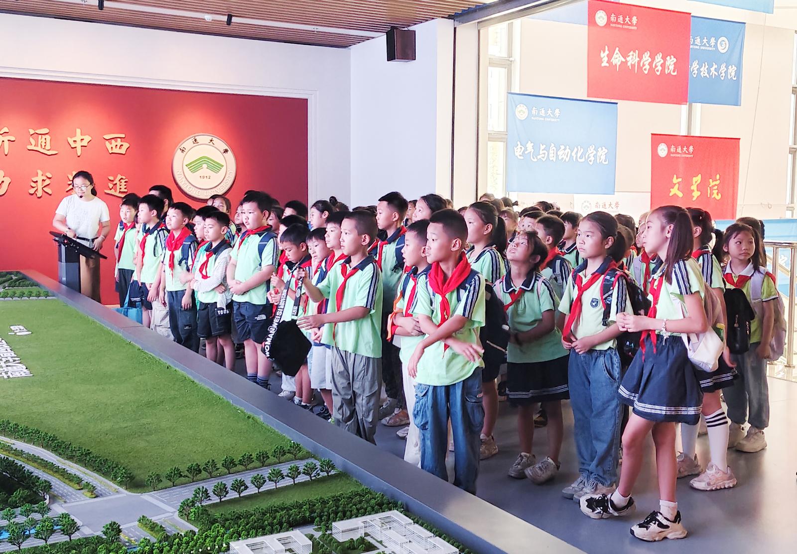 在南通大学校史馆,一幅幅老照片和一段段文字记载,瞬间将孩子们带回百年前的岁月。在南通大学老师的耐心引导下,孩子们循着校史发展的脉络,一步步了解通大与张謇先生的深厚渊源。从张謇先生秉持“实业救国、教育兴邦”的信念创办学校,到一代代通大人坚守教育初心、助力国家发展的历程,每一则故事都让孩子们驻足聆听、若有所思。通过生动的校史讲解,孩子们不仅知晓了南通大学的历史,更深刻理解了“教育是强国之基”的道理。