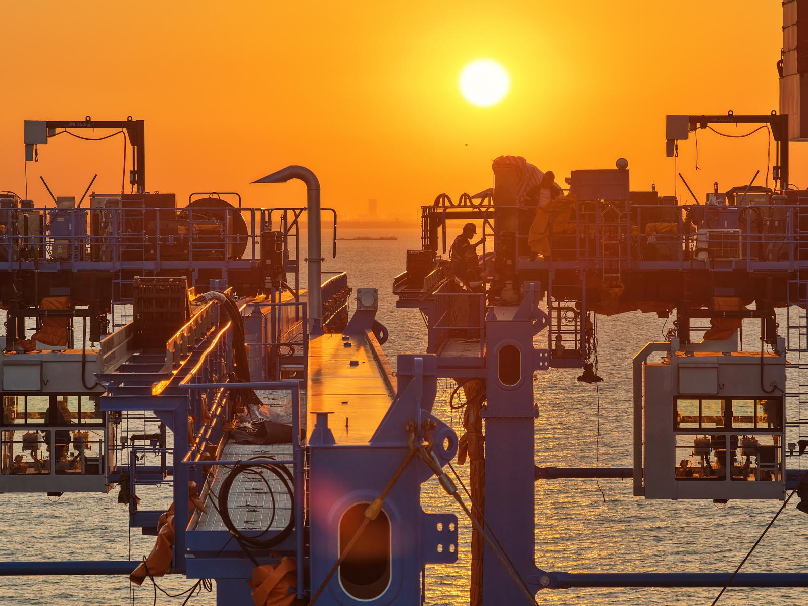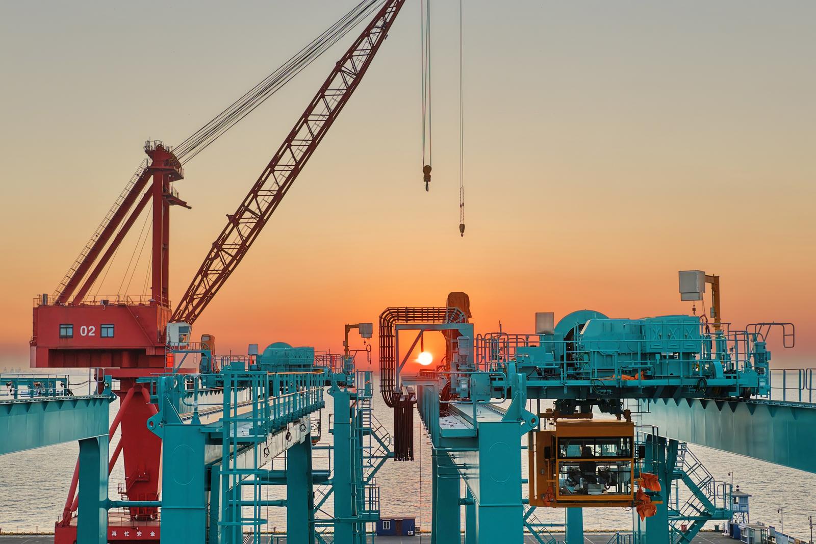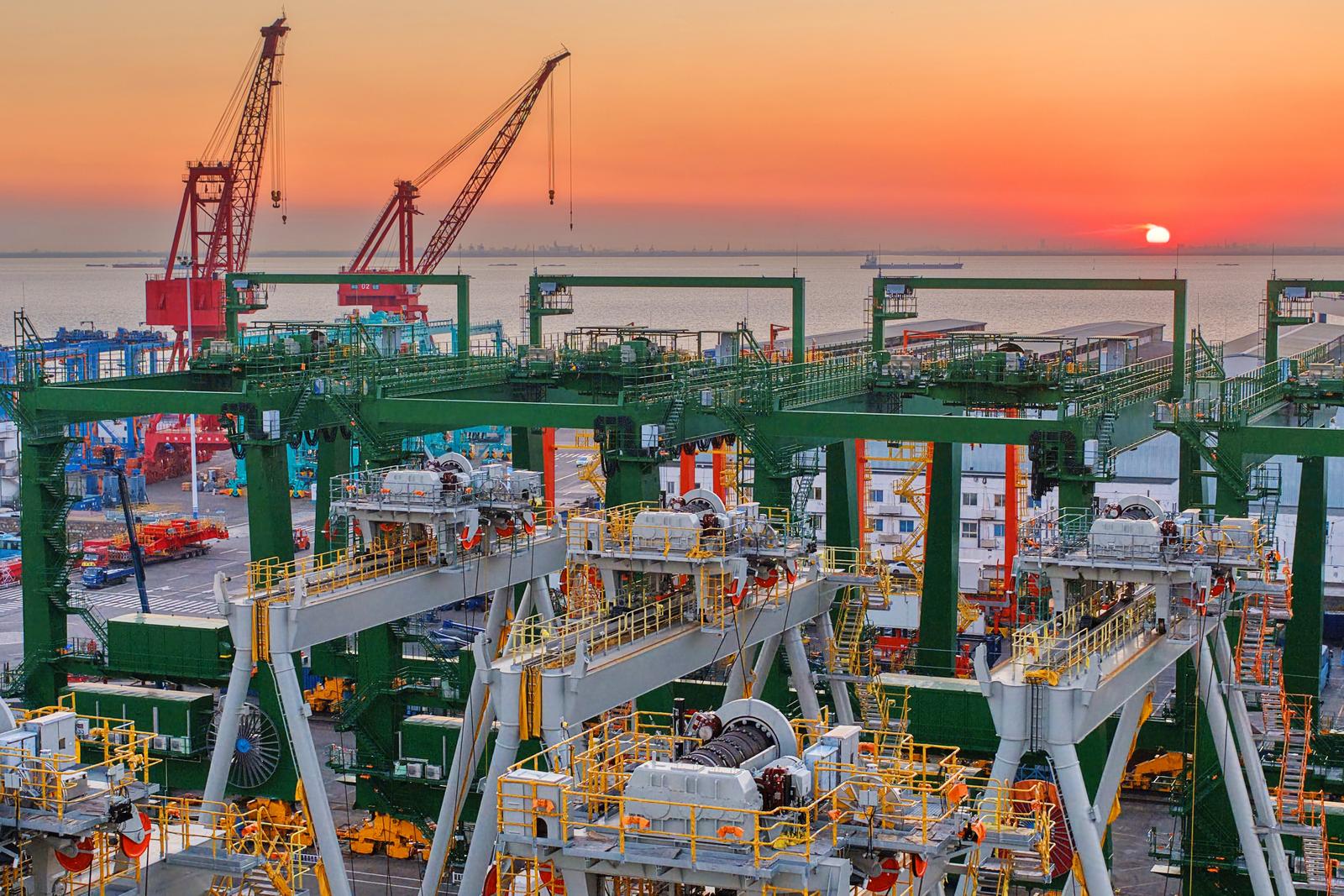 2025年10月9日在振华南通分公司拍摄的正在进行总装调试的港机产品。今年前9个月,振华南通分公司共向国内外发运港机设备230多台,助力斯里兰卡、沙特、墨西哥等国家,以及广州、上海、深圳等地区自动化港口建设。