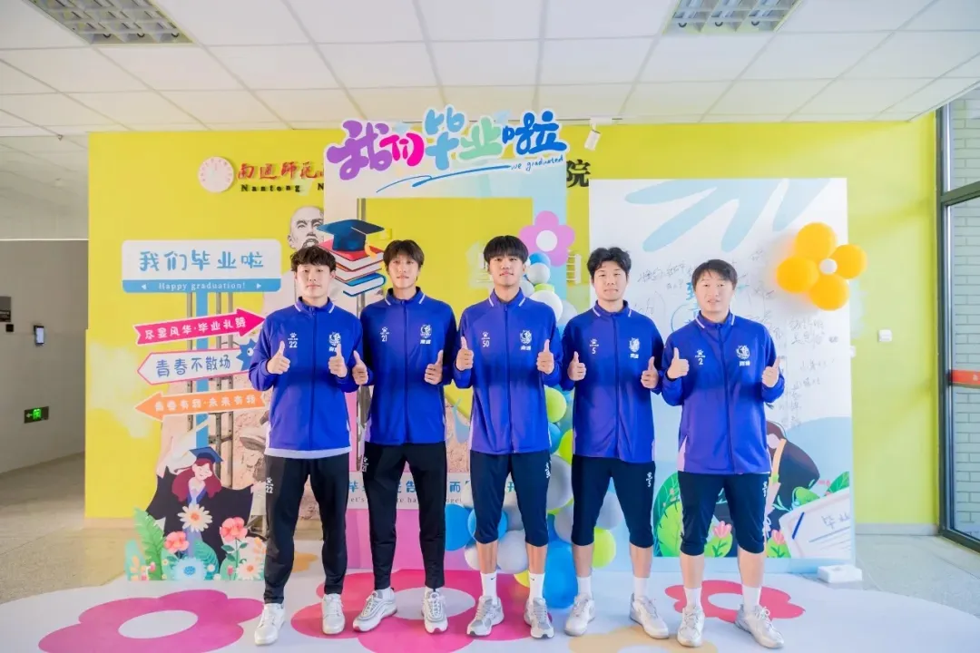 今年6月18日,程薛坤、郭凯楠、张奕安、薛天翼、李董镭返回母校参加毕业典礼。