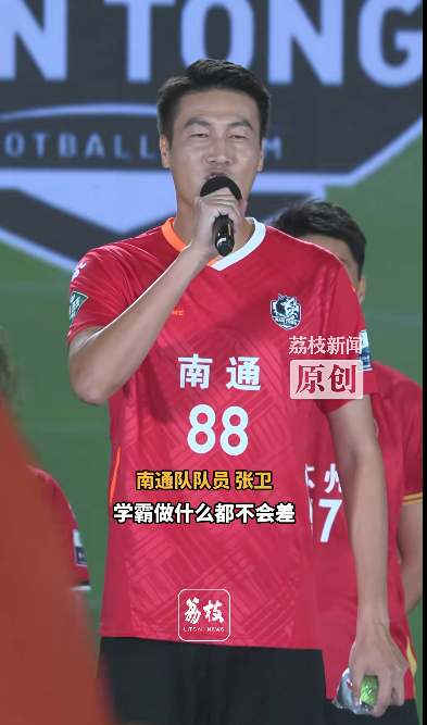 10月12日晚,在南京举办的2025“把青春华章写在祖国大地上”大思政课网络主题宣传和互动引导活动上,“苏超”十三太保代表亮相点燃全场。南通队球员张卫的话语铿锵有力:“真正的学霸,做什么都不会差!用进球证明自己,兄弟们,‘狼’来了!”