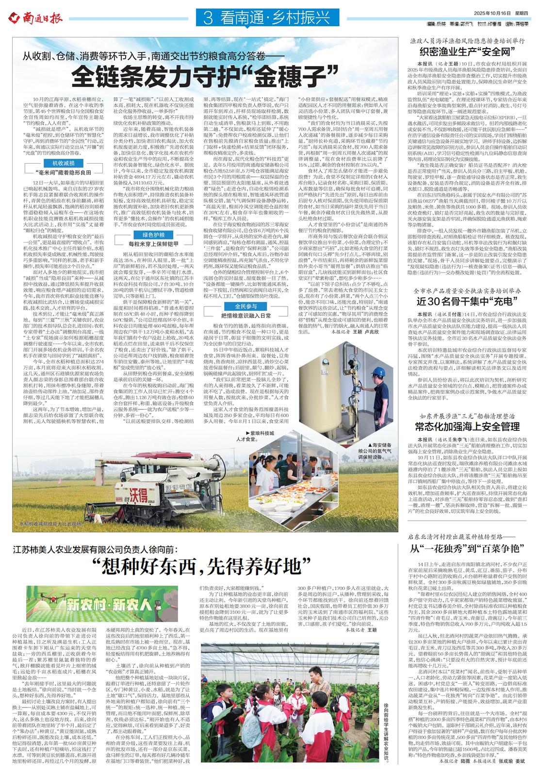 乡村振兴 | 从收割、仓储、消费等环节入手,南通交出节约粮食高分答卷——全链条发力守护“金穗子”