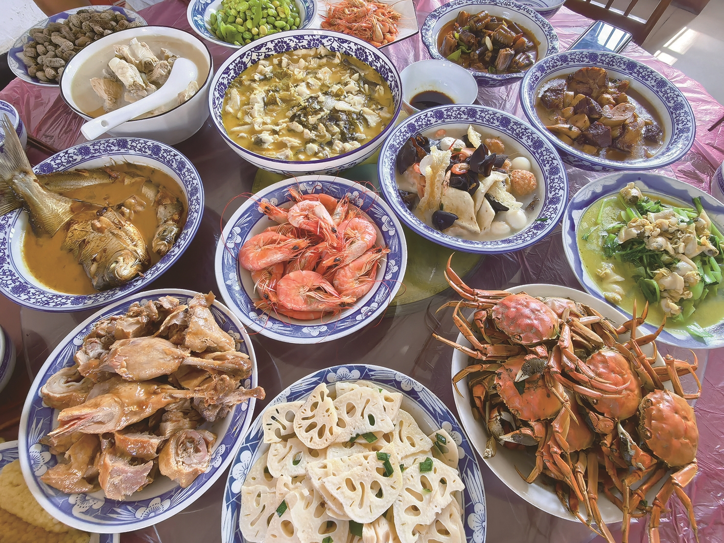 今年的中秋,于我而言多了几分烟火暖意。中午归家,母亲与弟弟早备好一大桌子菜等候。虽非山珍海味,可多是母亲院角小菜园里才摘下的青嫩菜蔬,竹篮中新收的土鸡蛋,昨晚才用笼子抓到的野生黄鳝……柴火灶里煨出的排骨汤全是妈妈的味道,直教我吃得格外香甜,连鱼汤汁都忍不住拌了饭。午后闲暇,祖孙三代同堂的笑闹声将秋日的午后填得满满当当。