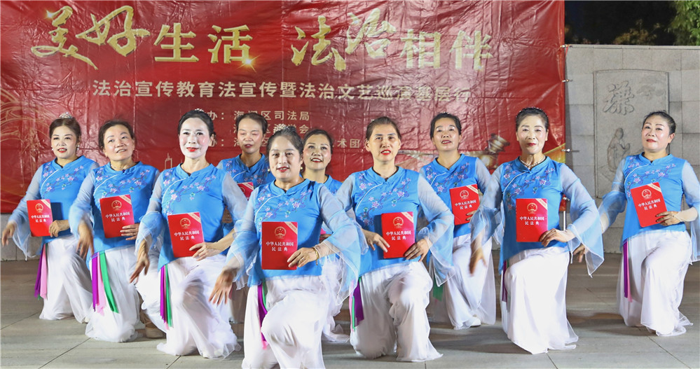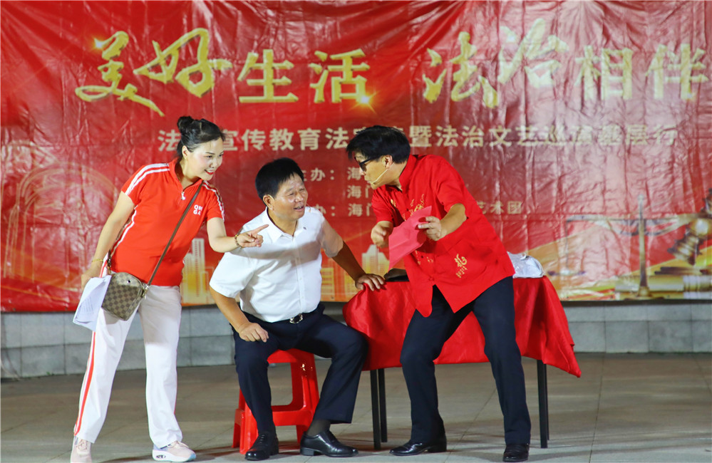 近日,江心沙农场邀请海门法治艺术团与农场本土艺术团在立新公园文化广场开展法治汇演,演员以真实案例改编的小品《天上不会掉馅饼》让大家身临其境,掌握常见诈骗套路,提醒大家不贪小便宜、不上当受骗;将赡养义务、邻里矛盾、遗产继承等常见法律问题巧妙融入舞蹈表演和乐器演奏,寓教于乐,增强感染力;以海门山歌的形式,将宪法变成歌曲,通过对唱和歌舞相伴,让生硬的条例动听入耳,拉近法律与职工居民间的距离。活动之余,还进行了法律知识知多少有奖竞答,进一步增强了活动的趣味性和参与感。