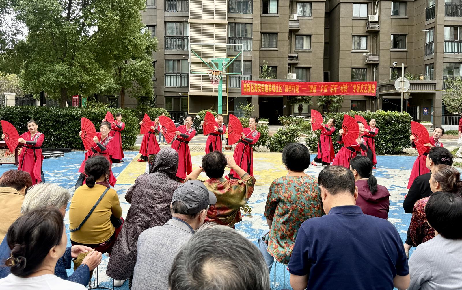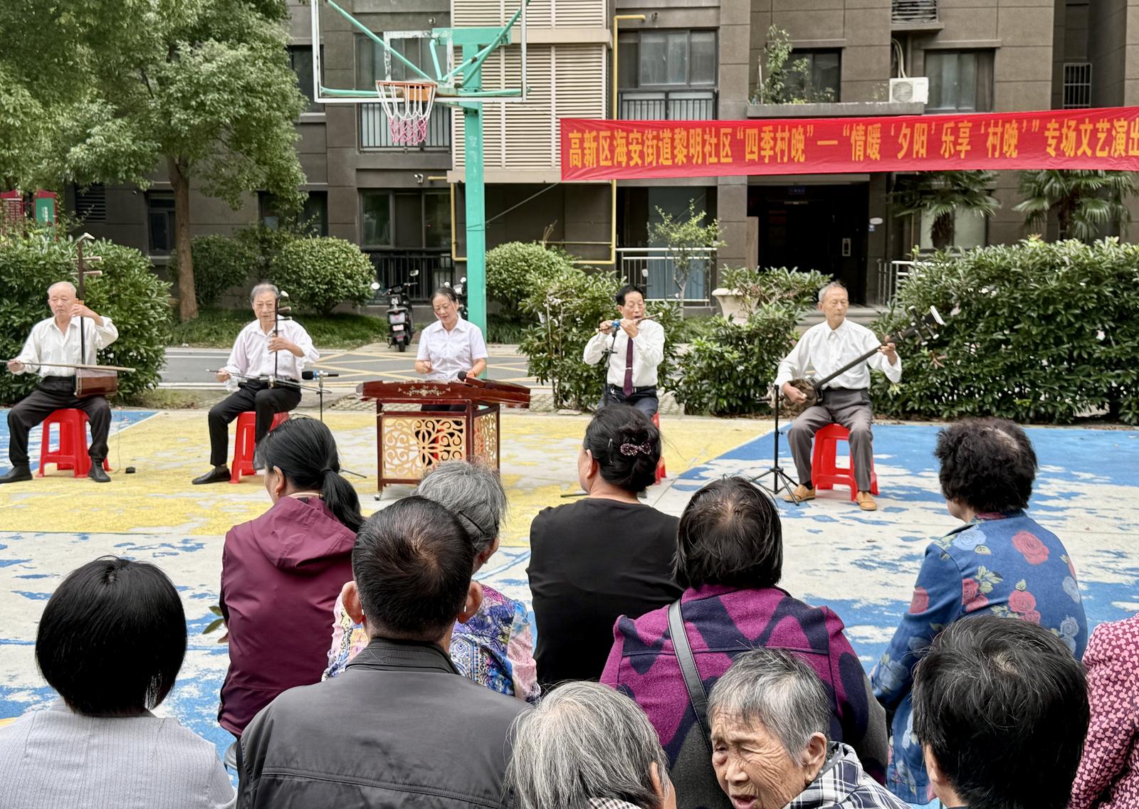 莫道桑榆晚,为霞尚满天。10月16日,一场以“情暖‘夕阳’ 乐享‘村晚’”为主题的“四季村晚”专场文艺演出活动在海安街道黎明社区黎明润景篮球场热闹开演。活动以精彩的文艺演出点燃热情,用趣味十足的互动游戏传递欢乐,让社区老人们度过了一段温馨又难忘的时光。