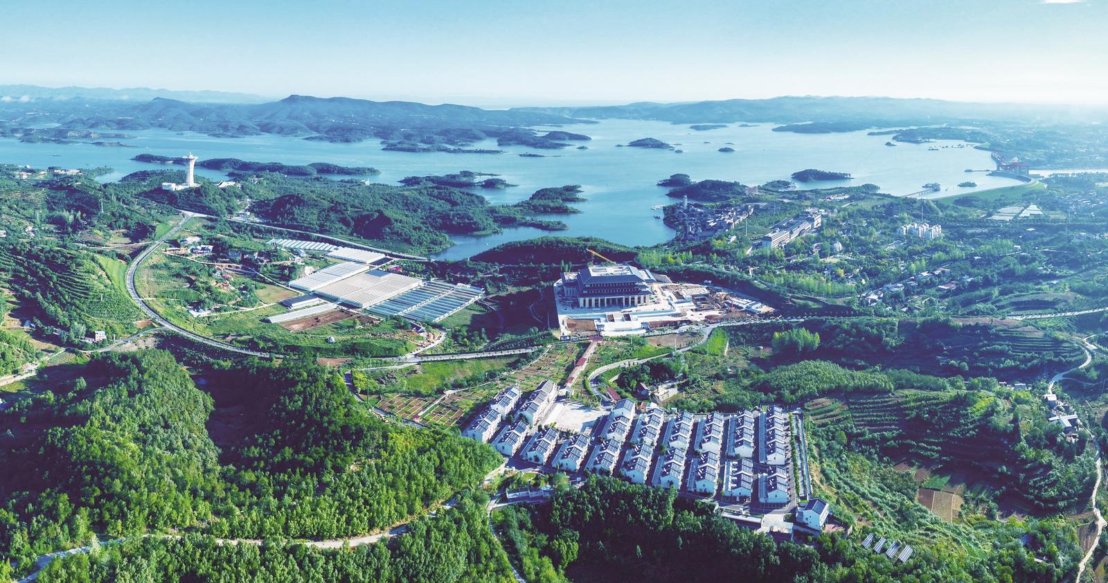 船行碧波上,岸边风光亦动人。整齐排列的移民安置房,白墙搭配木格栅,与库区的青山碧水相映成趣。