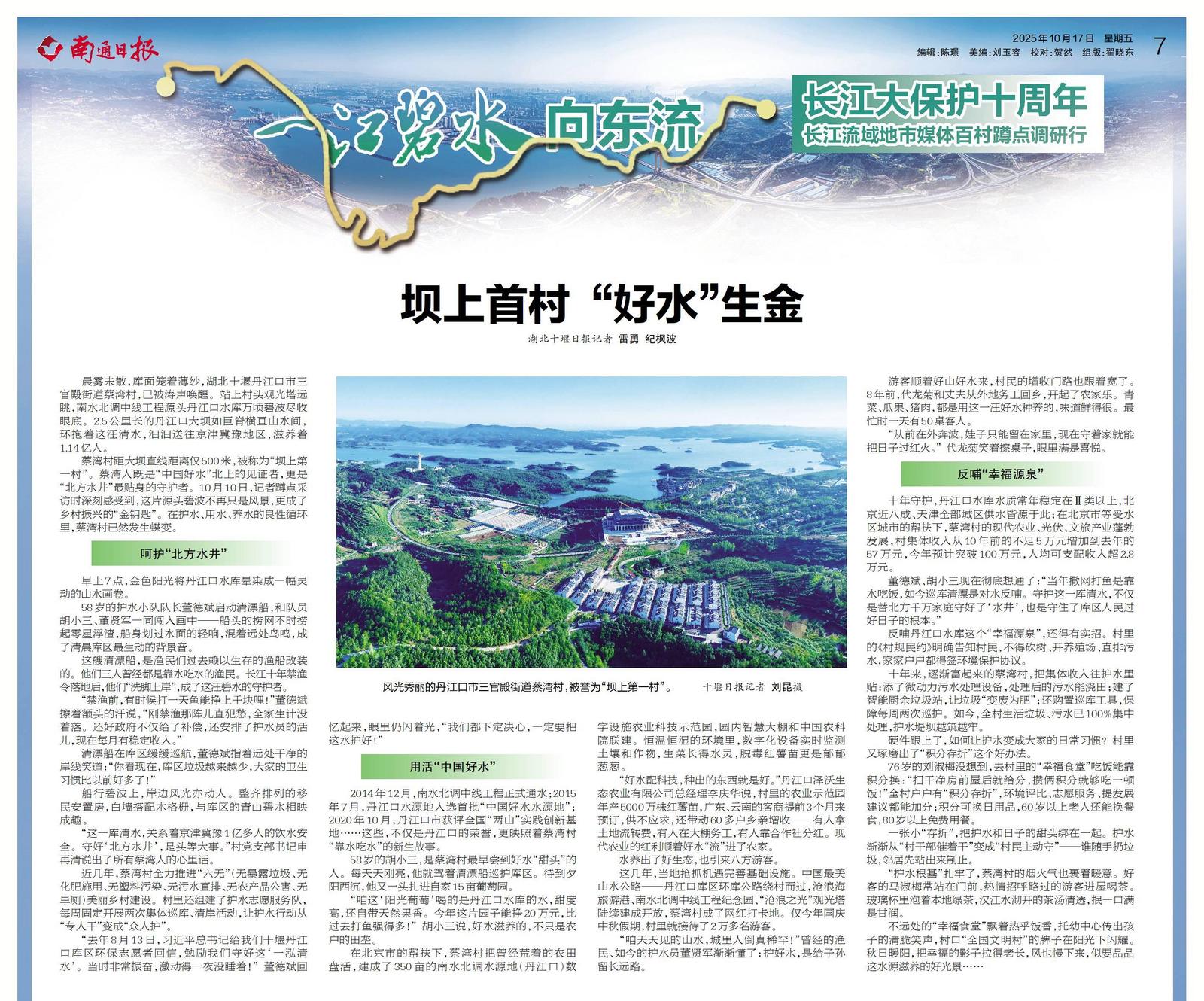 十年守护,丹江口水库水质常年稳定在Ⅱ类以上,北京近八成、天津全部城区供水皆源于此;在北京市等受水区城市的帮扶下,蔡湾村的现代农业、光伏、文旅产业蓬勃发展,村集体收入从10年前的不足5万元增加到去年的 57万元,今年预计突破100万元,人均可支配收入超2.8万元。