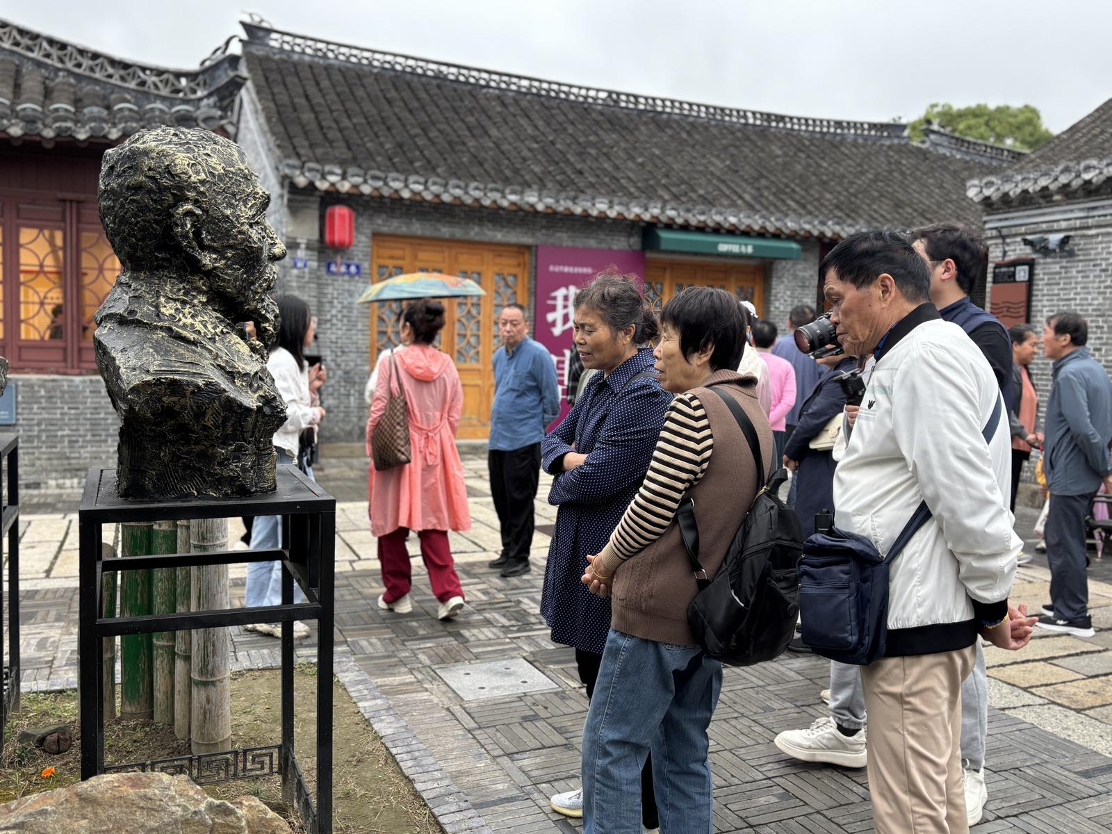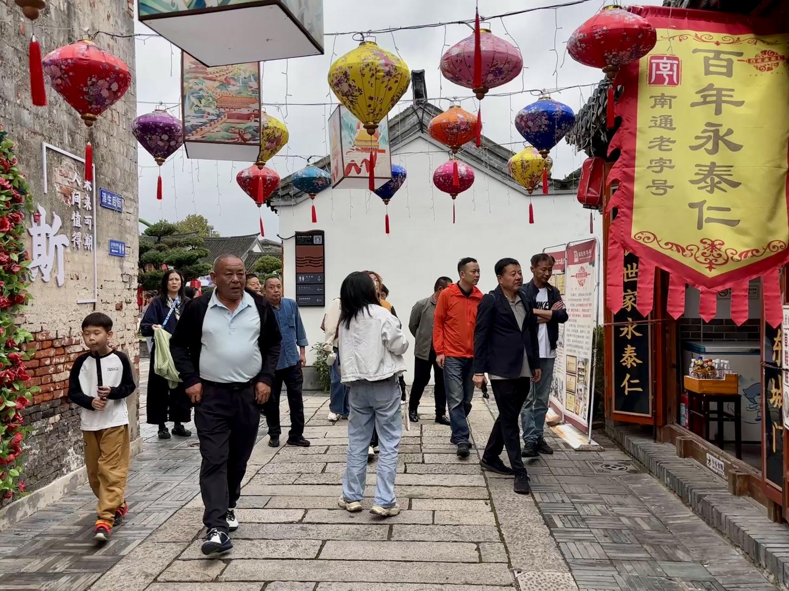 当天,旅行团首站走进唐闸古镇。作为中国近代民族工业发祥地之一,这里保留着大生纱厂、钟楼等百年遗迹。现场,游客们在讲解员的带领下,漫步青石巷道,在百年雕塑长廊中与张謇等历史名人“对话”;品尝非遗美食“草鞋底”,体验可甜可咸的南通味道;探访蓝印花布工坊,感受传统工艺的魅力。入夜后,一场爆笑喜剧《空降未婚妻》在龙信开心剧场上演,为行程增添了轻松欢快的氛围。