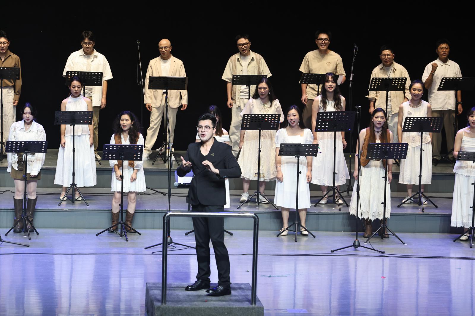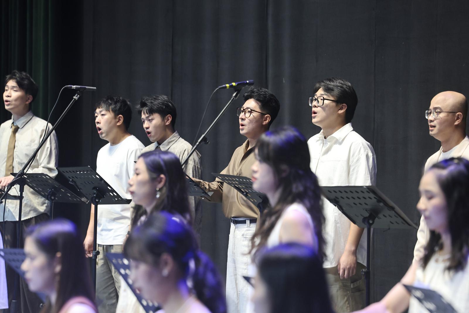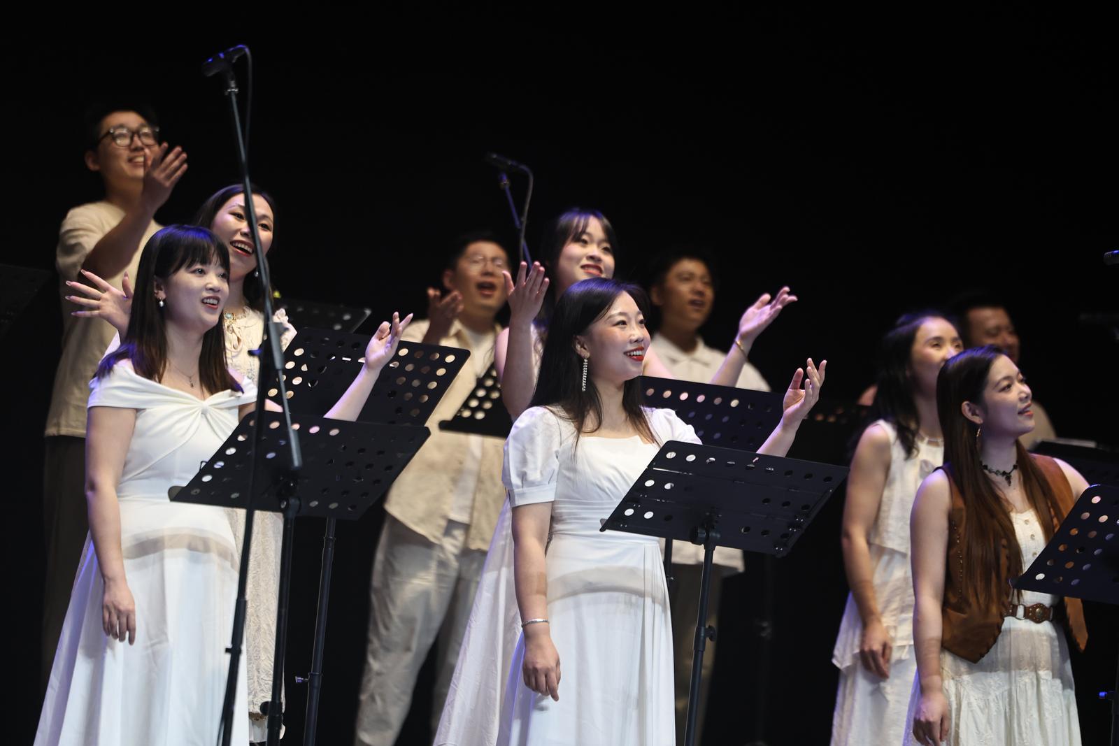 本场音乐会精选多首曲目,通过多声部合唱的创新演绎,赋予《蝴蝶泉边》《勇气》《孤勇者》等歌曲全新艺术生命力。合唱团成员以精准的音准、丰富的层次感和饱满的情感表达,展现了流行音乐与合唱艺术的深度融合,既保留了原曲的流行特质,又增添了合唱特有的和声魅力。