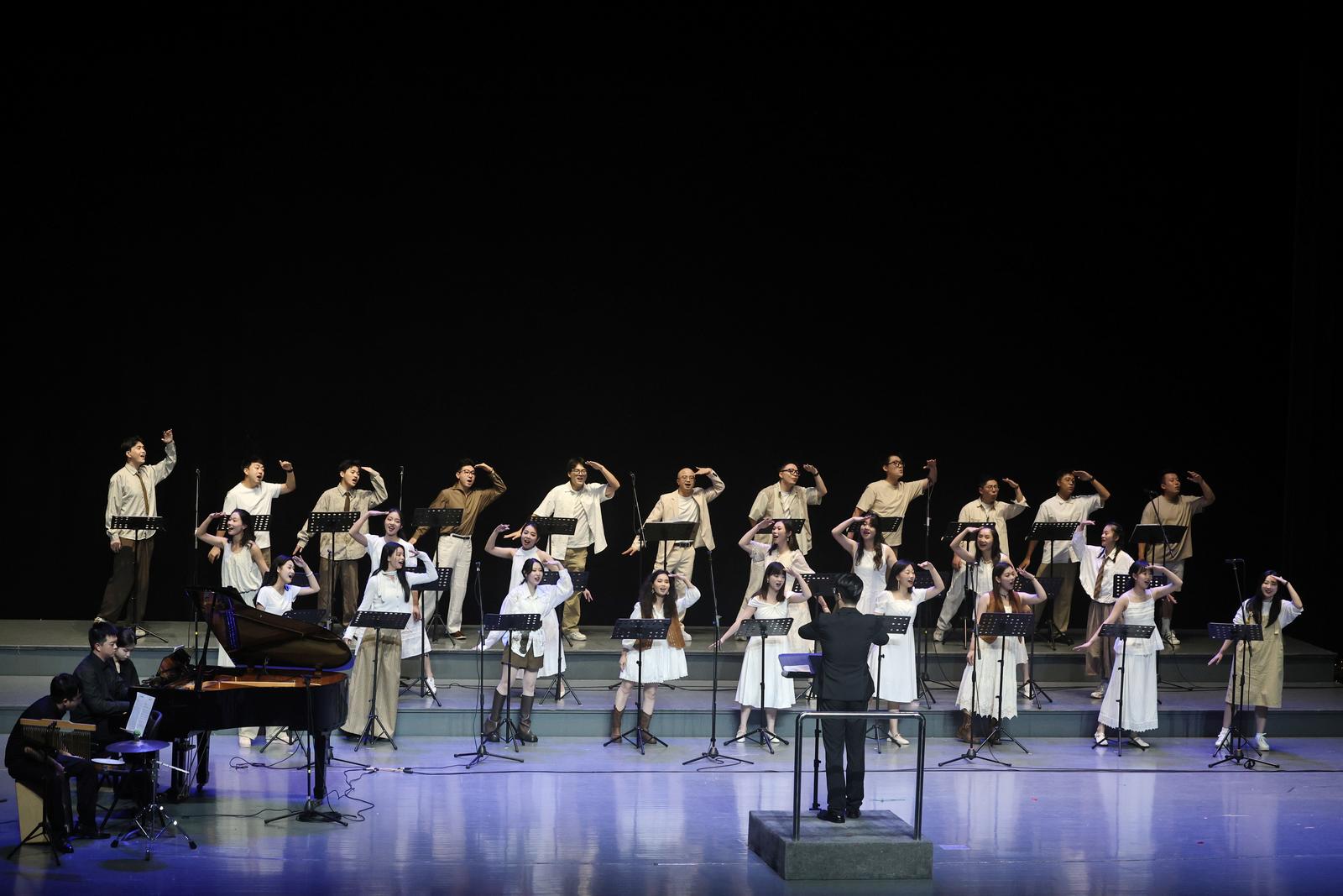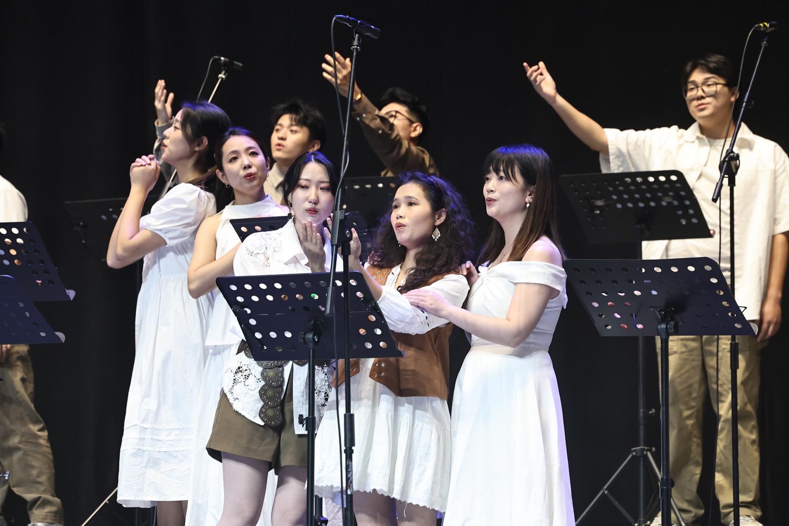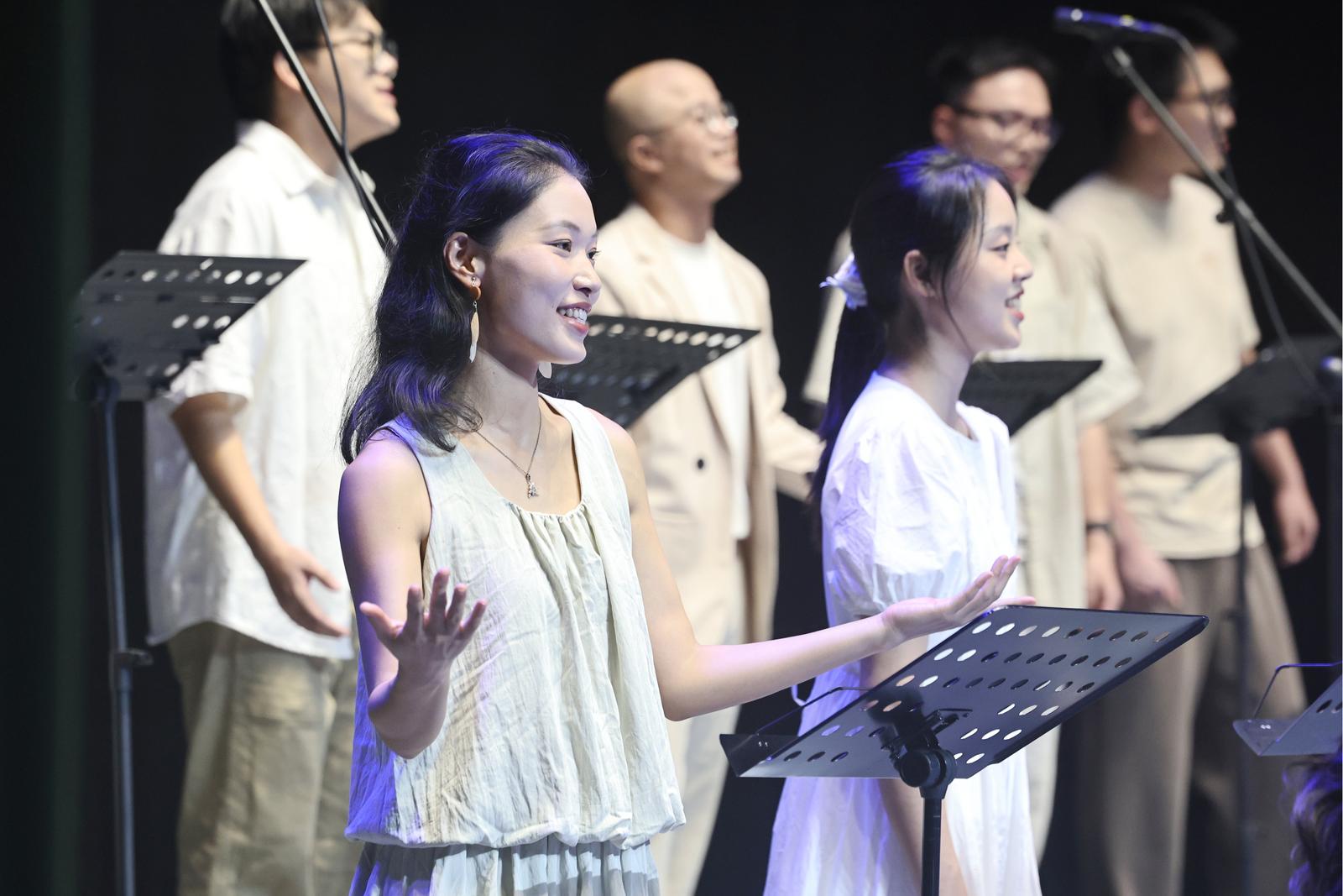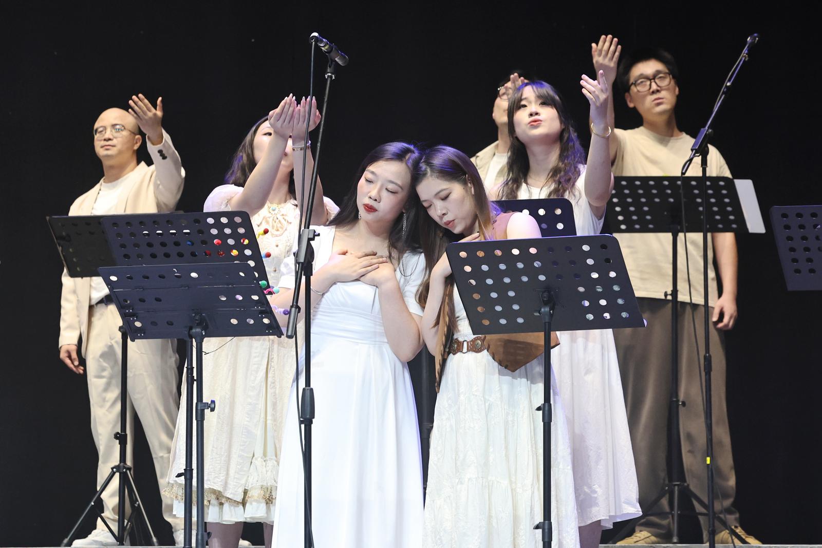 本场音乐会精选多首曲目,通过多声部合唱的创新演绎,赋予《蝴蝶泉边》《勇气》《孤勇者》等歌曲全新艺术生命力。合唱团成员以精准的音准、丰富的层次感和饱满的情感表达,展现了流行音乐与合唱艺术的深度融合,既保留了原曲的流行特质,又增添了合唱特有的和声魅力。
