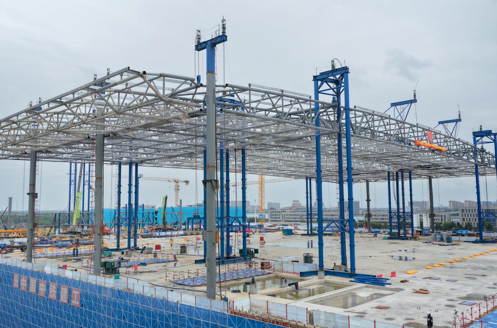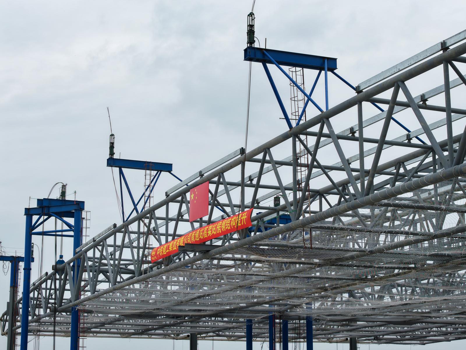 2025年10月19日,中铁建工集团承建的北沿江高铁(新建上海至南京至合肥高速铁路)南通站高架站房钢结构屋盖顺利提升至预定位置,为后续金属屋面、幕墙及装饰装修施工奠定了坚实基础。